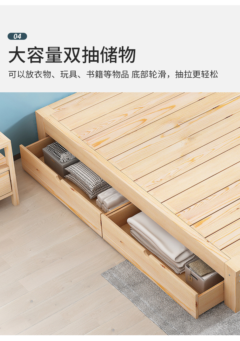 • 40 높은 침대 + 서랍 + 패드, 통기성 스타일 ● 모든 단단한 나무 강화