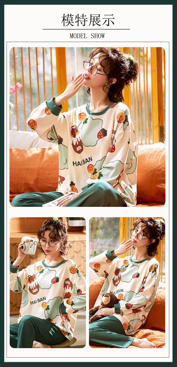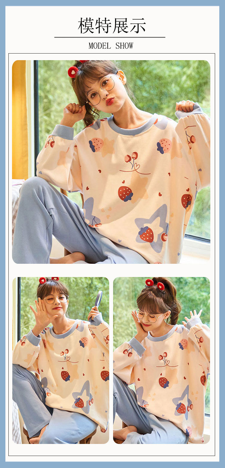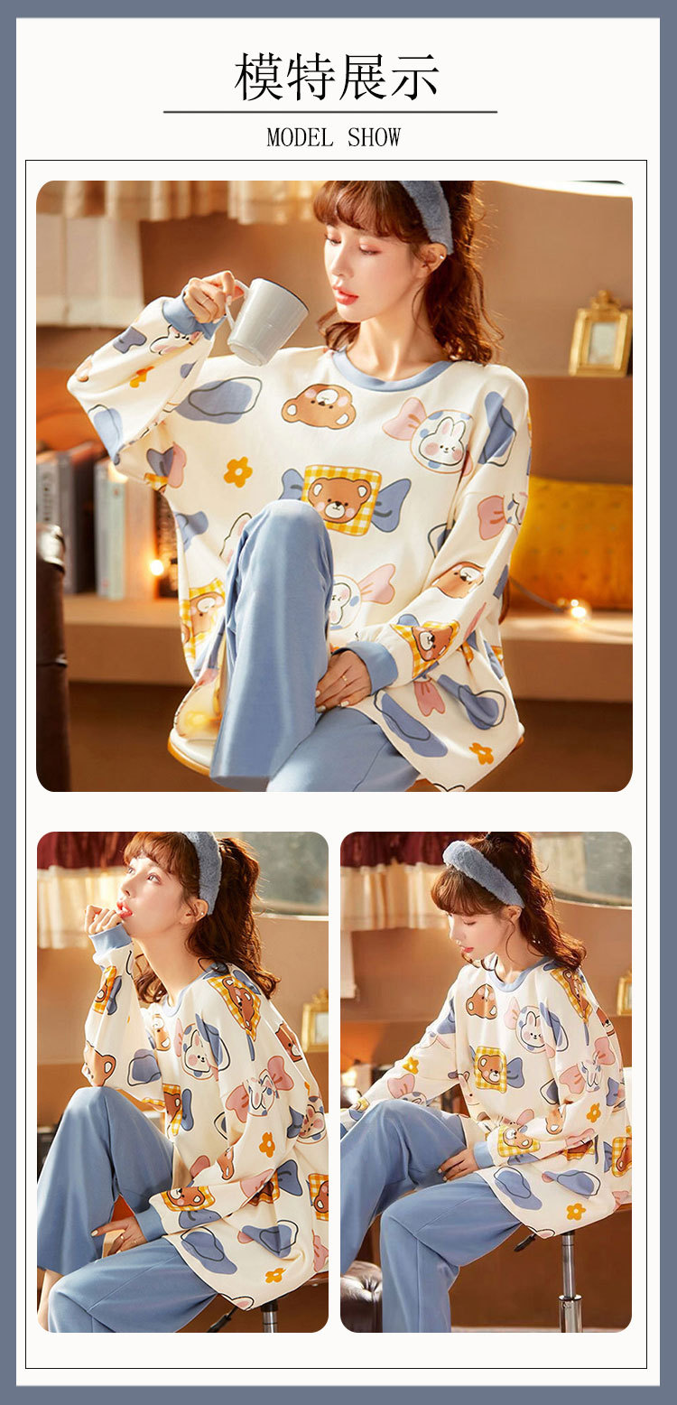 도매 가을 겨울 고품질 면 느낌 잠옷 여성용 라운드넥 귀여운 심플 스타일 긴팔 긴바지 홈웨어 세트스토어 가기