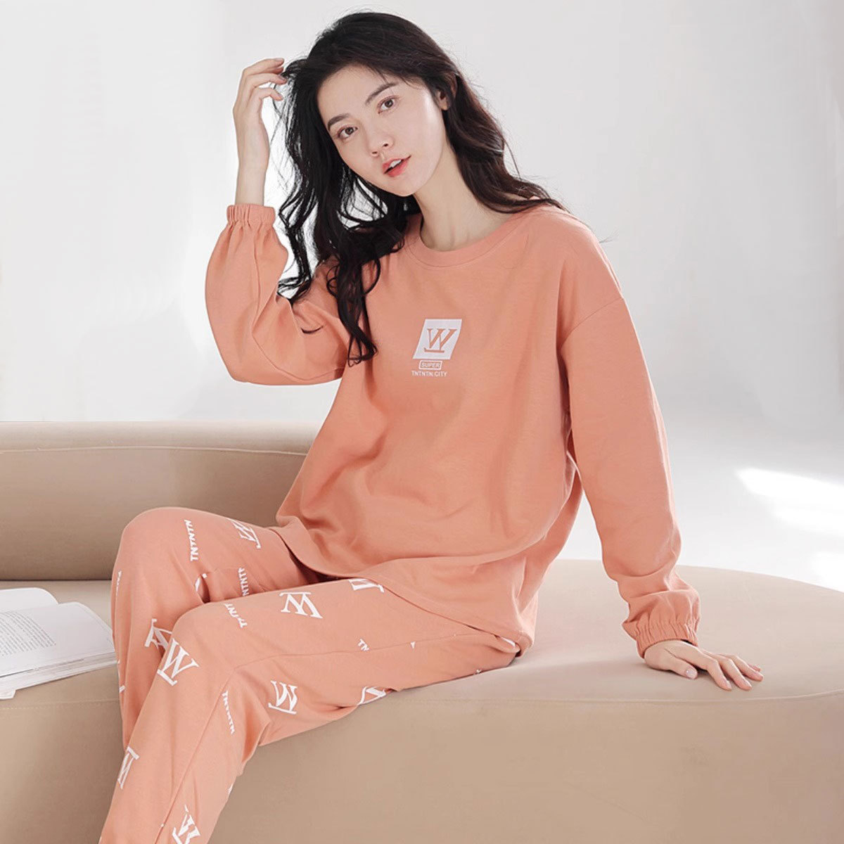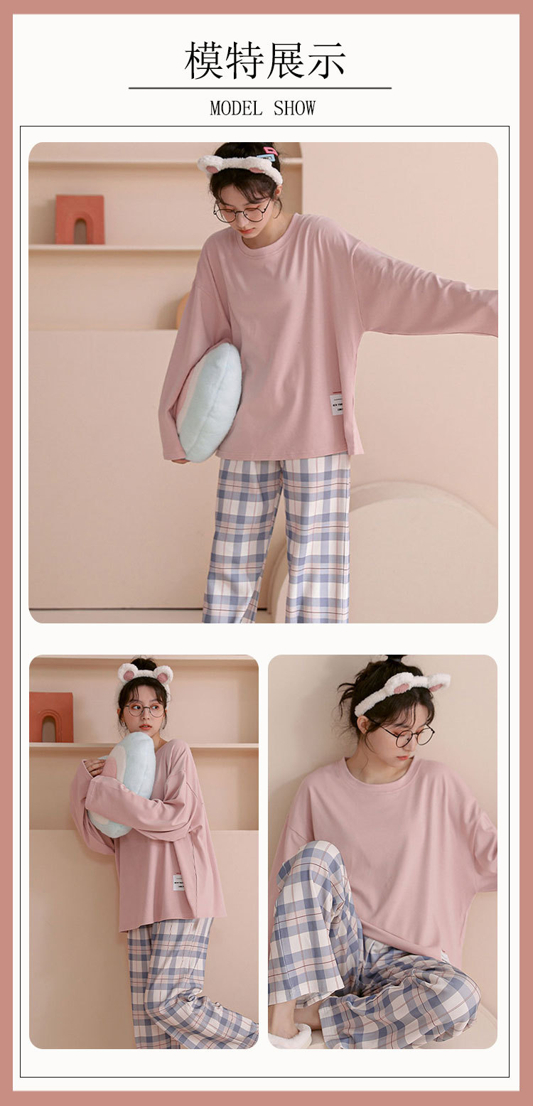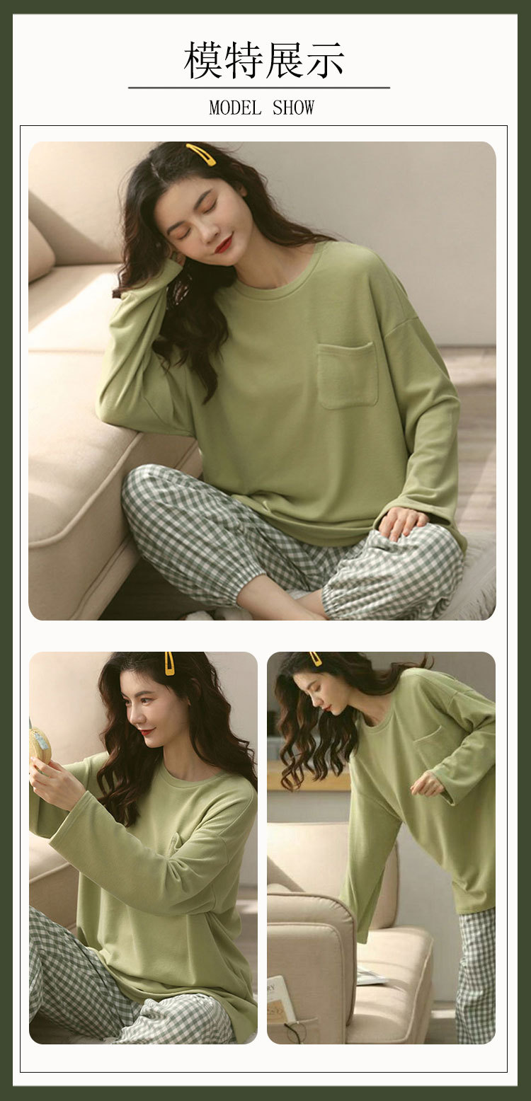 도매 가을 겨울 고품질 면 느낌 잠옷 여성용 라운드넥 귀여운 심플 스타일 긴팔 긴바지 홈웨어 세트스토어 가기