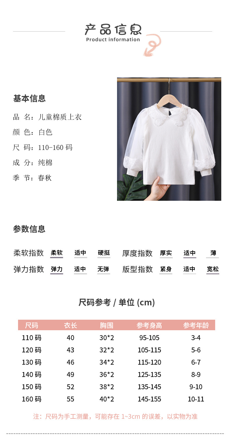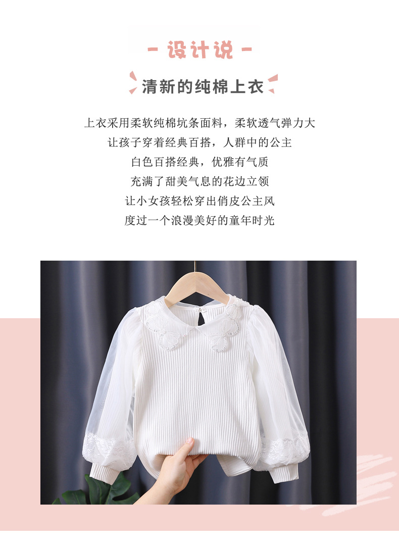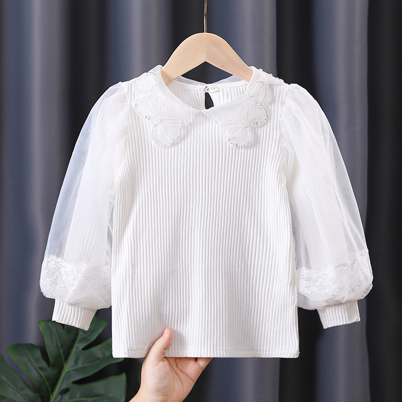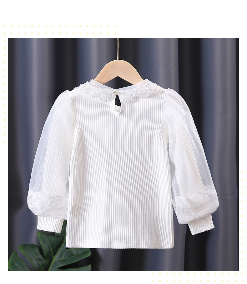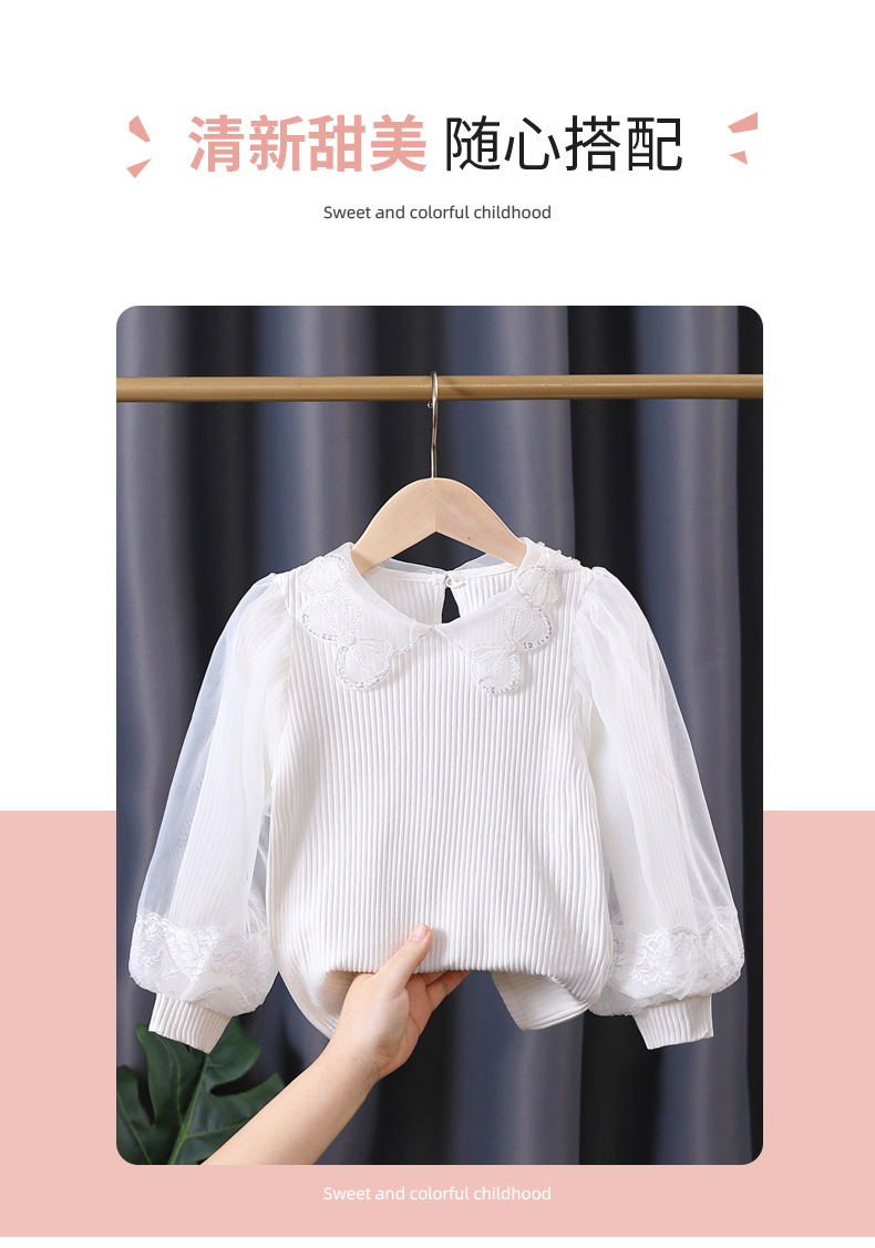 아동복 여아 탑 봄과 가을 얇은 어린이 긴 소매 순면 피트 백킹 셔츠 어린 소녀 퍼프 슬리브 티셔츠 7