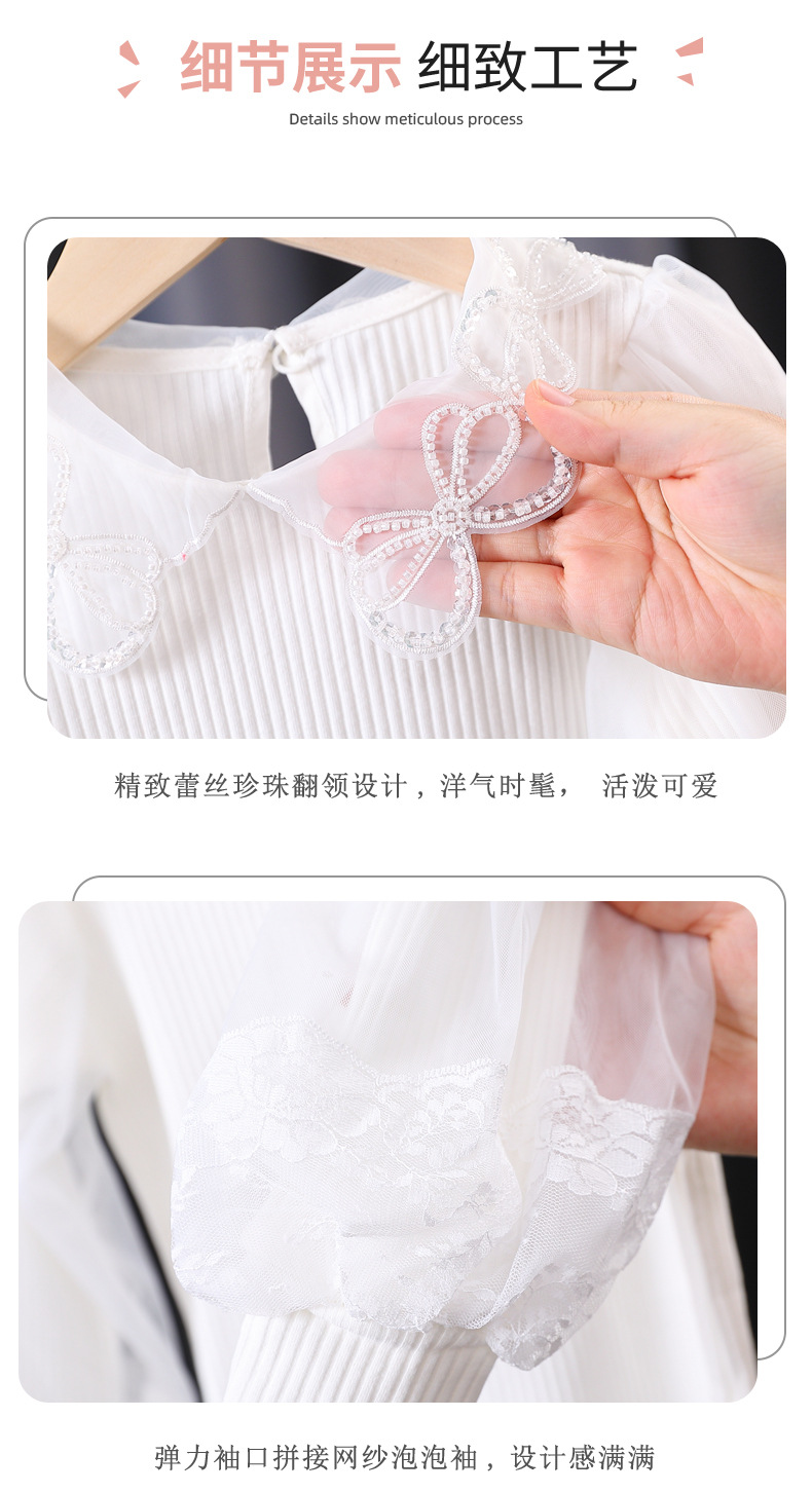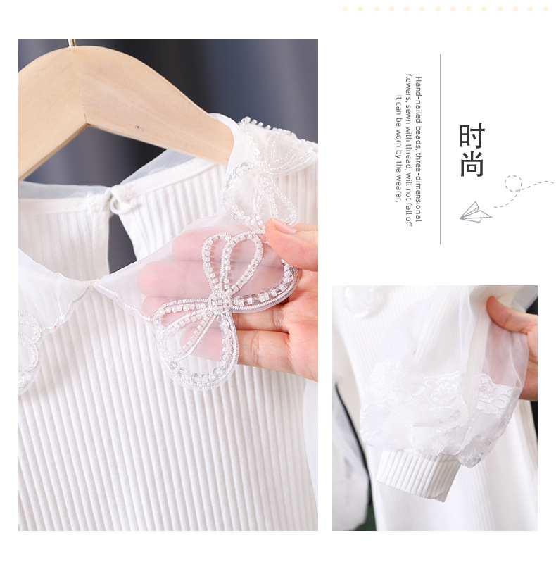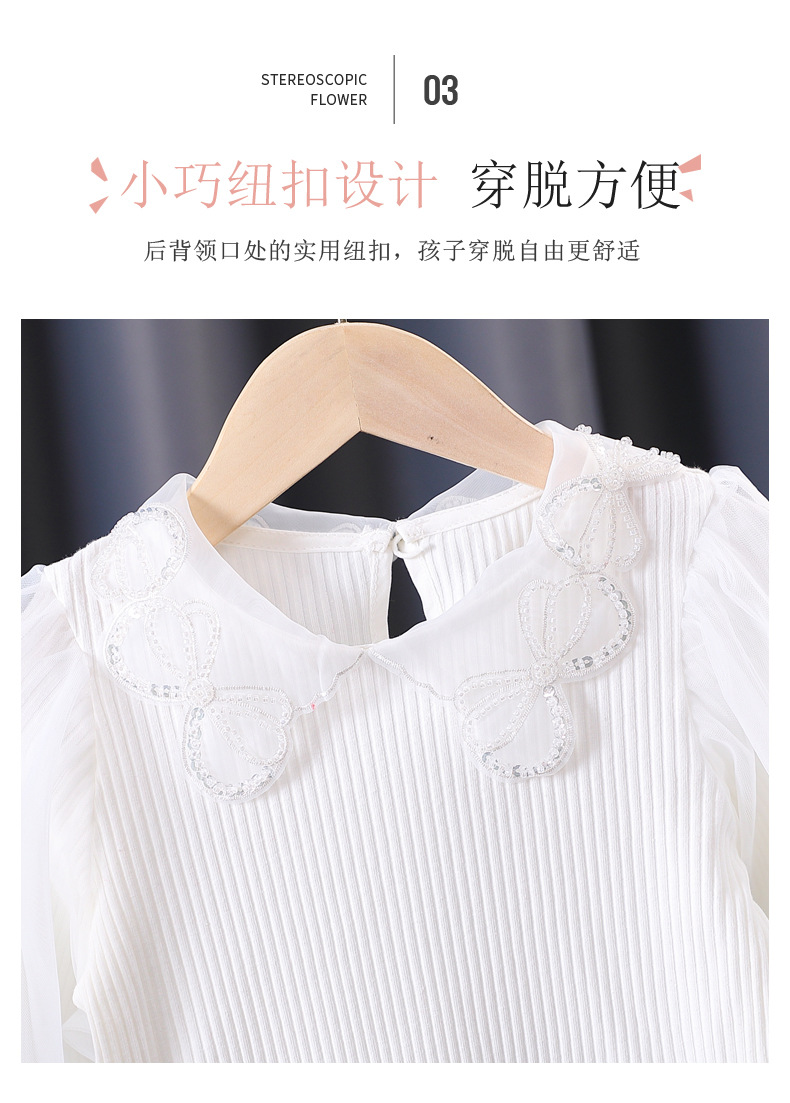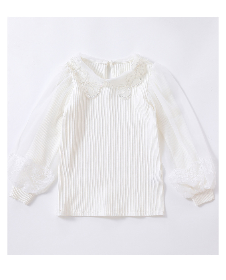 아동복 여아 탑 봄과 가을 얇은 어린이 긴 소매 순면 피트 백킹 셔츠 어린 소녀 퍼프 슬리브 티셔츠 7