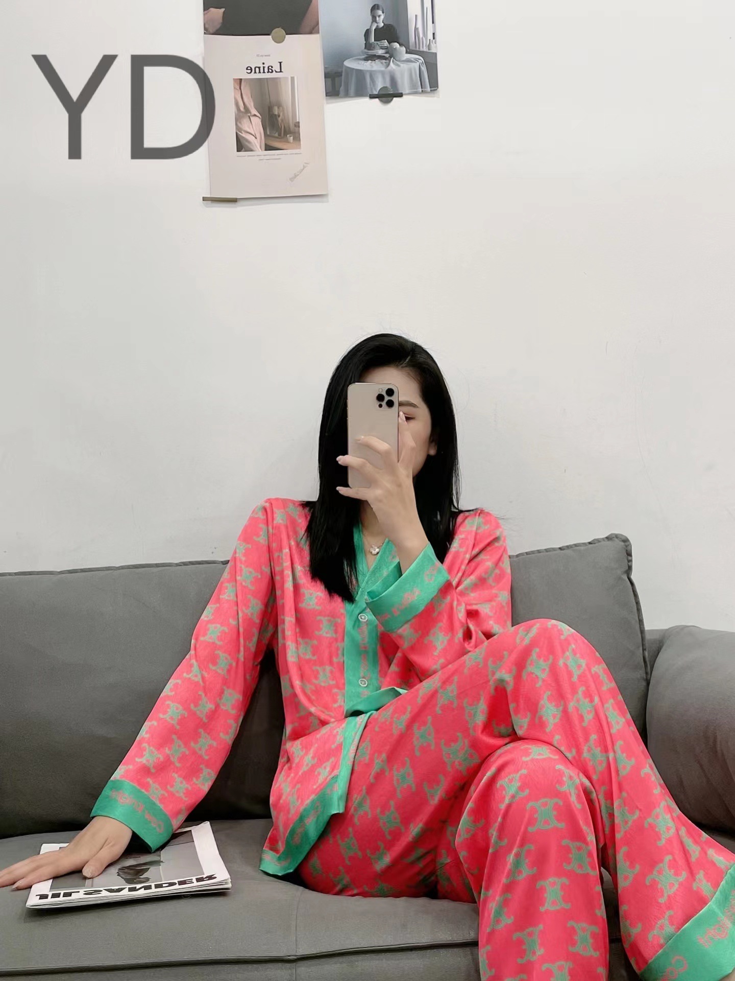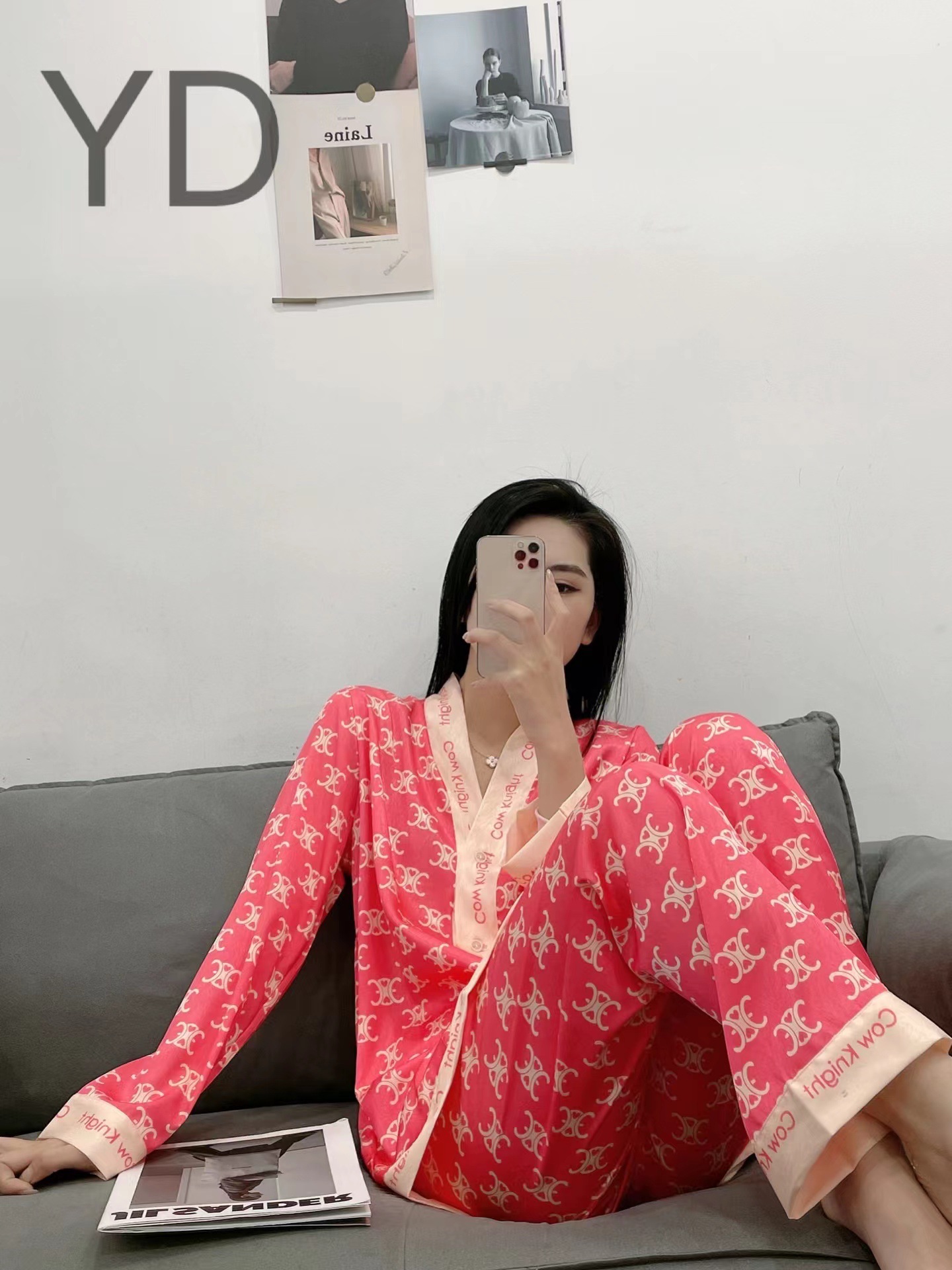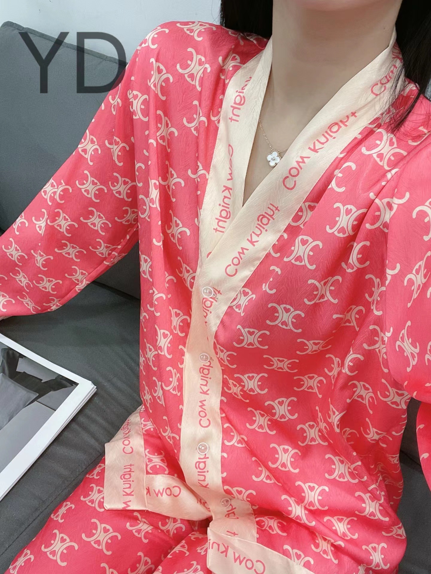 YD 홈 의류 2022 새로운 가을과 여름 아이스 실크 기모노 칼라 파우더 C 홈 세트스토어 가기