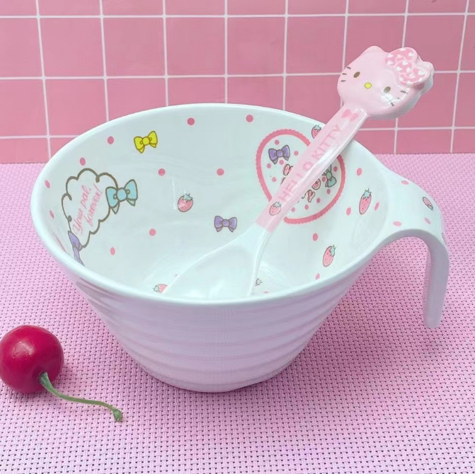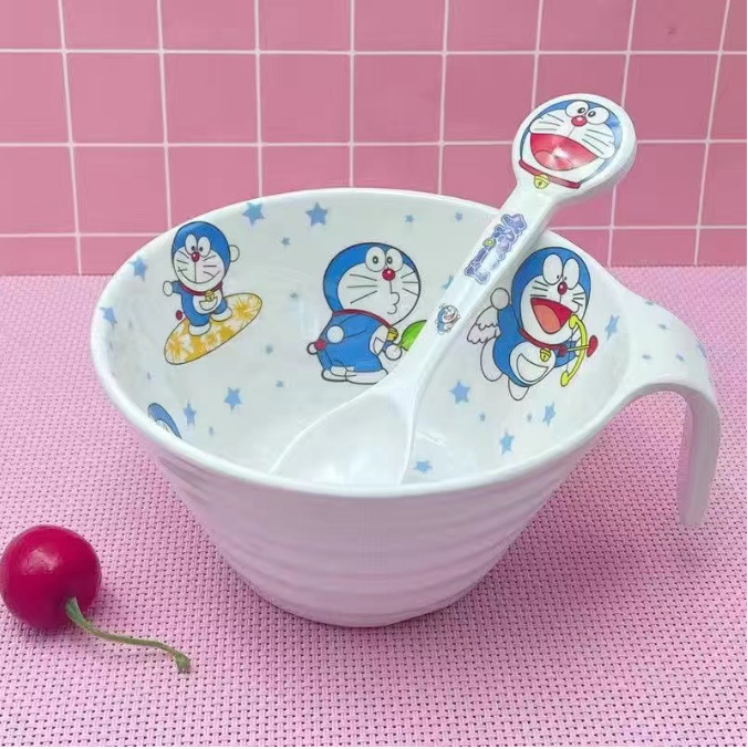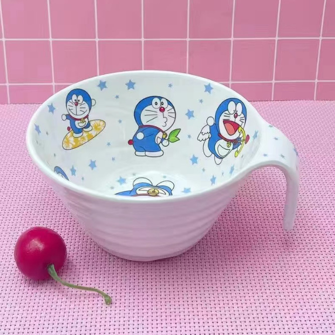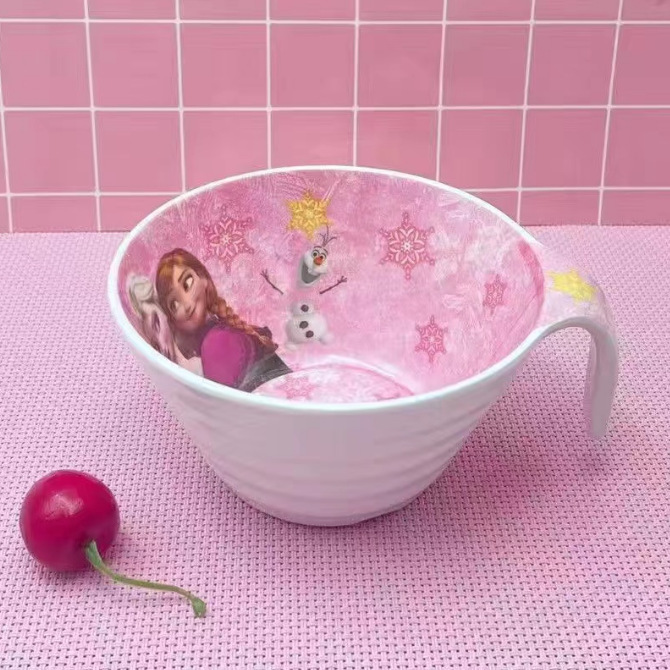 만화 어린이 핸들 그릇 유치원 아기 학생 먹는 그릇 과일 국수 수프 그릇 멜라민 드롭 방지 식기