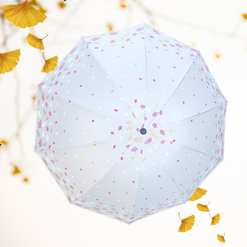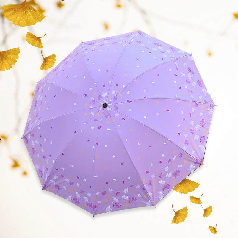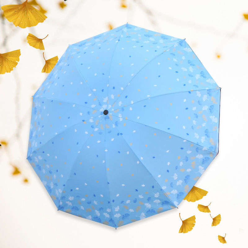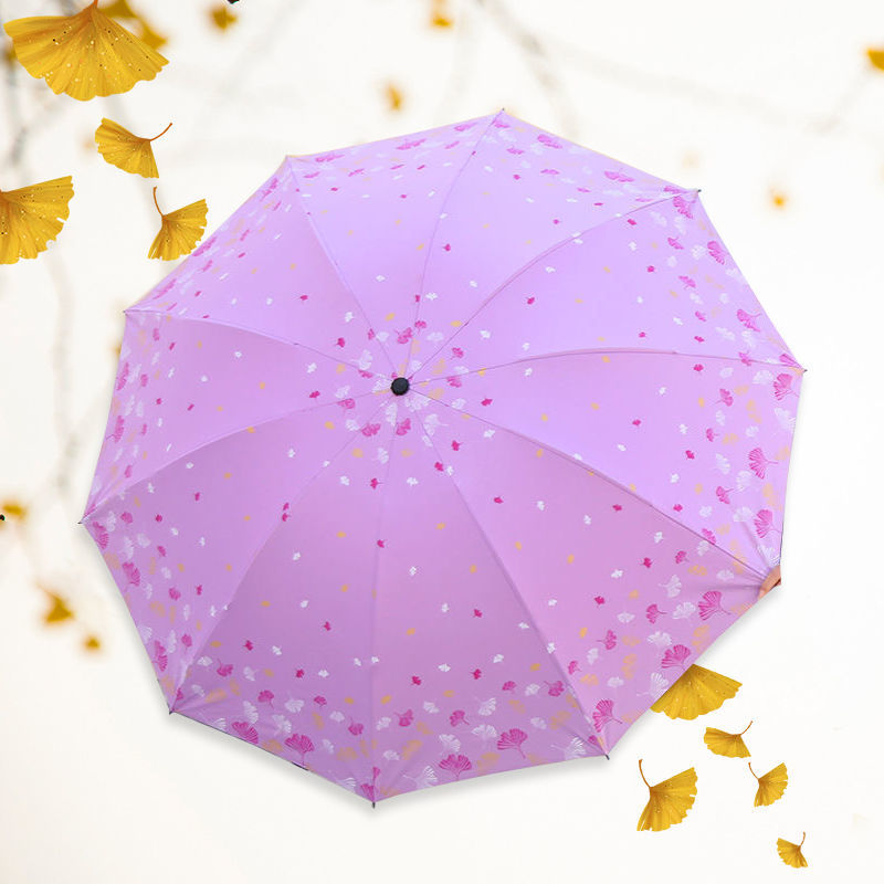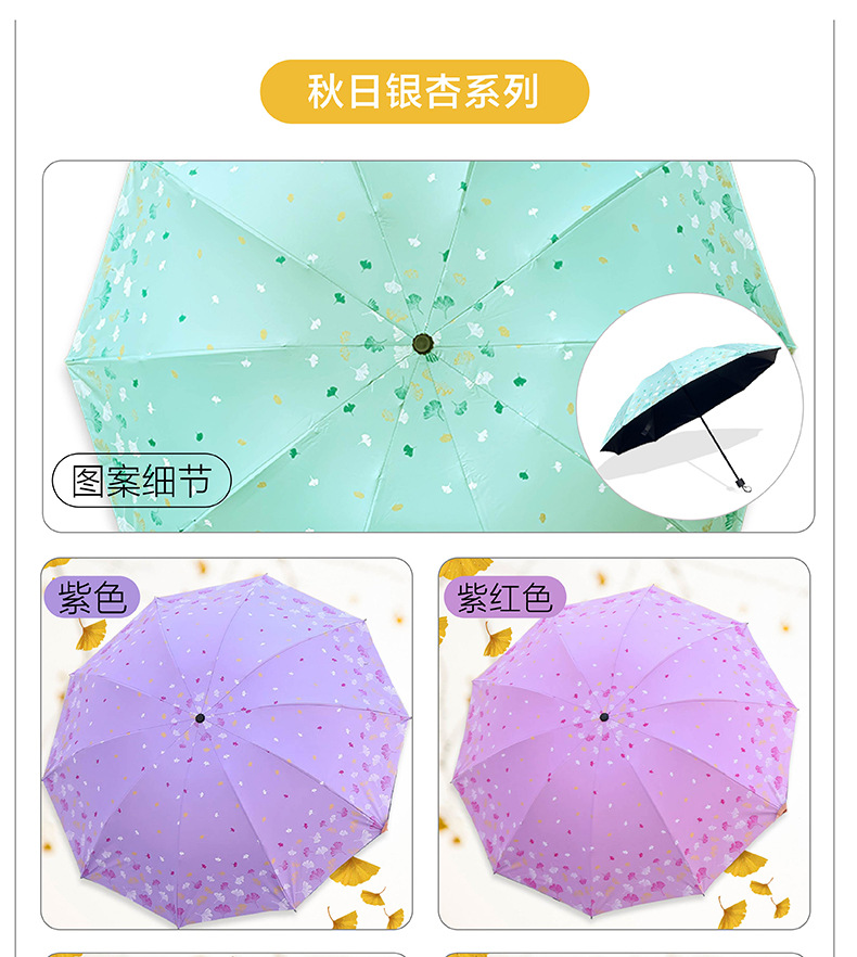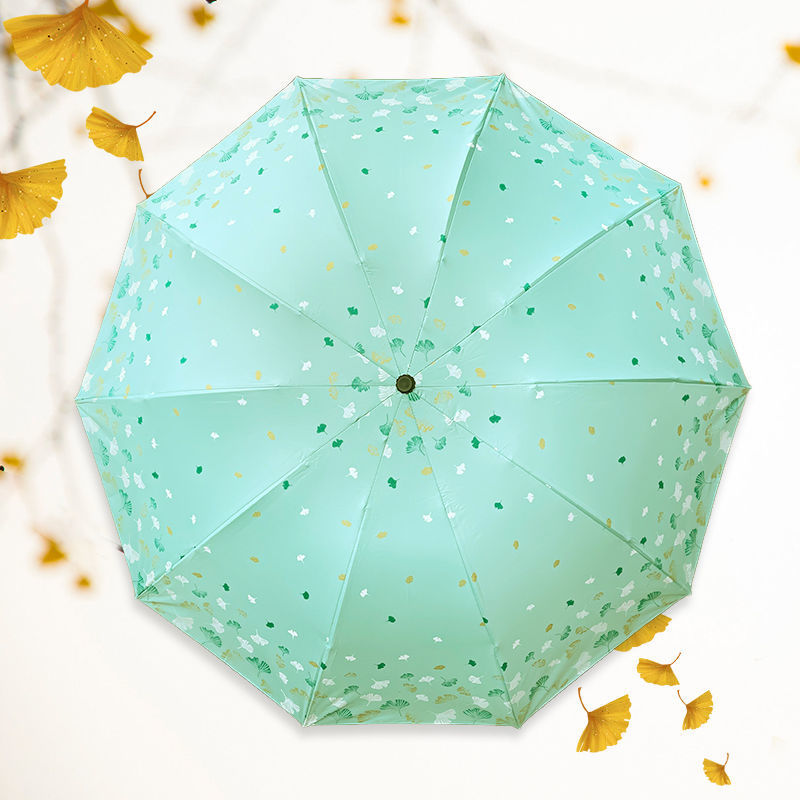 은행 나무 자외선 차단제 양산 우산 도매 야외 휴대용 작은 신선한 맑은 우산 세 접는 수동 검은 접착제 이중 목적 우산스토어 가기