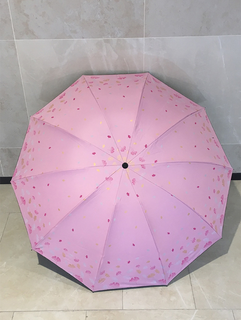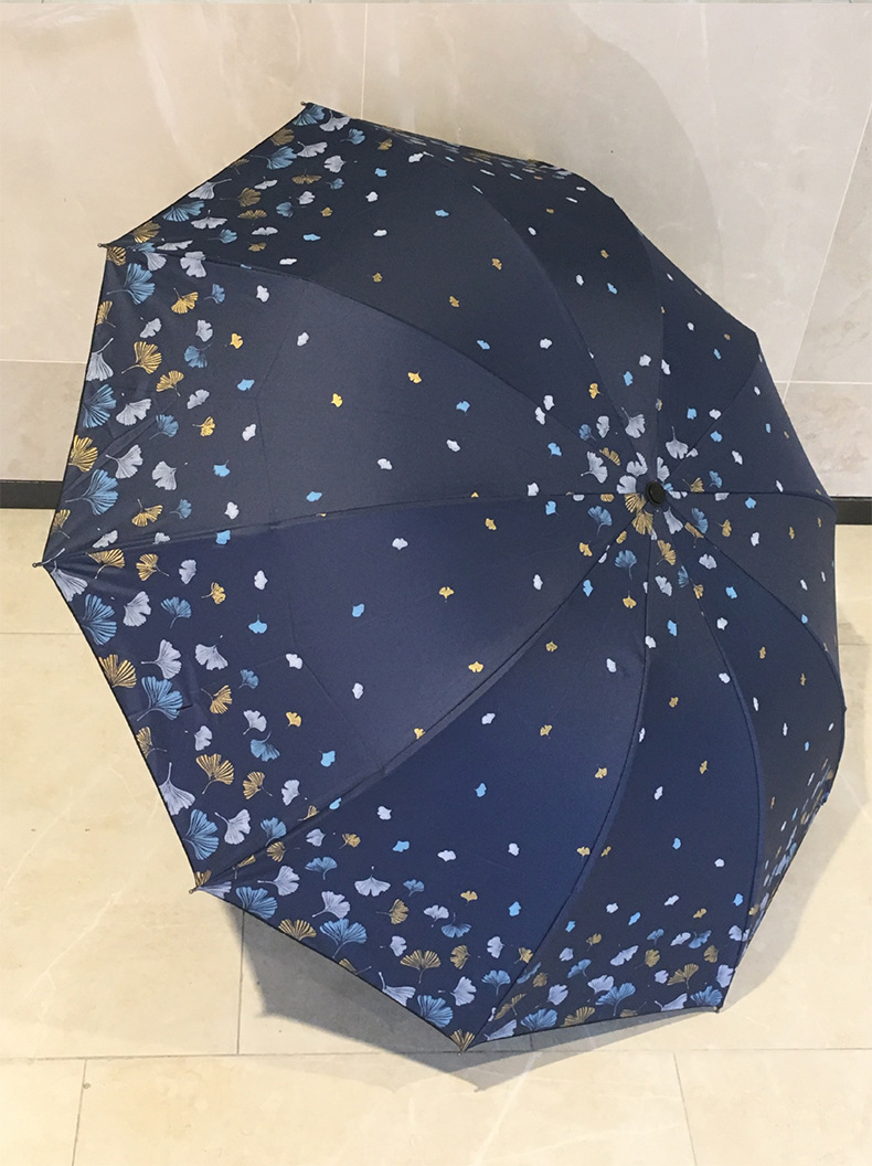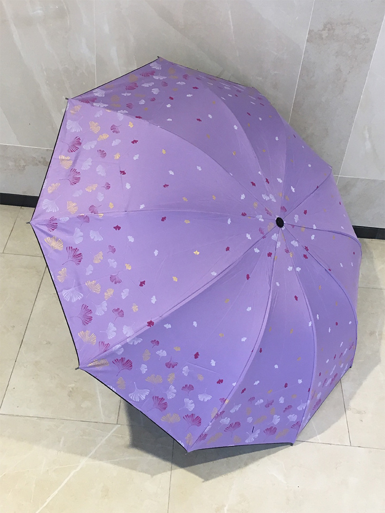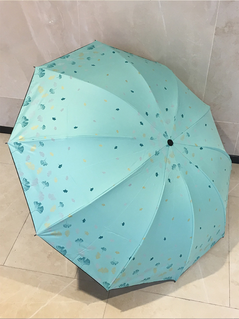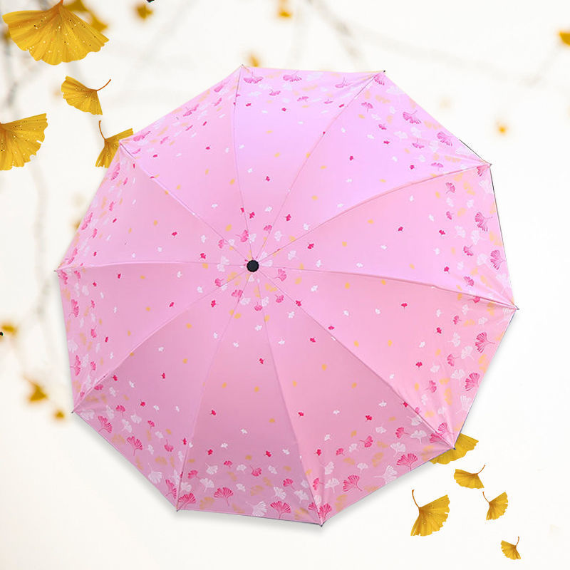 은행 나무 자외선 차단제 양산 우산 도매 야외 휴대용 작은 신선한 맑은 우산 세 접는 수동 검은 접착제 이중 목적 우산스토어 가기