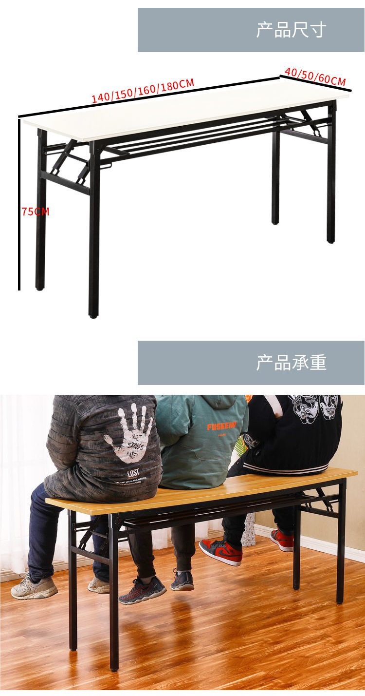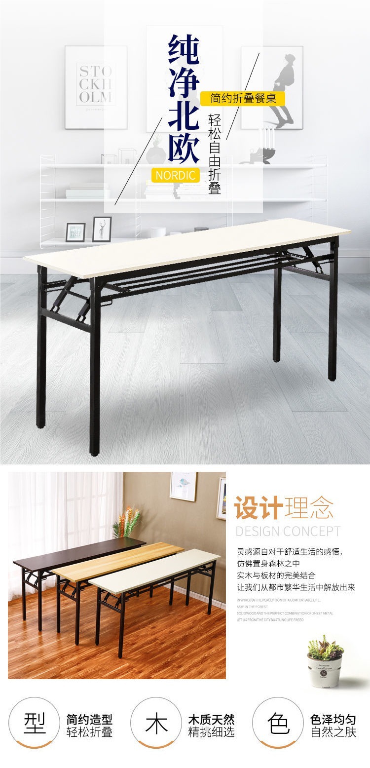 긴 접이식 테이블 식탁 컴퓨터 책상 긴 테이블 간단한 쓰기 책상 교육 데스크 회의 및 전시 테이블 의자스토어 가기