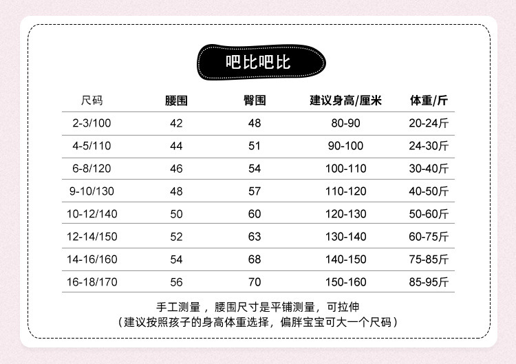 偏胖宝宝或者喜欢穿宽松的宝贝建议拍大一码哦
