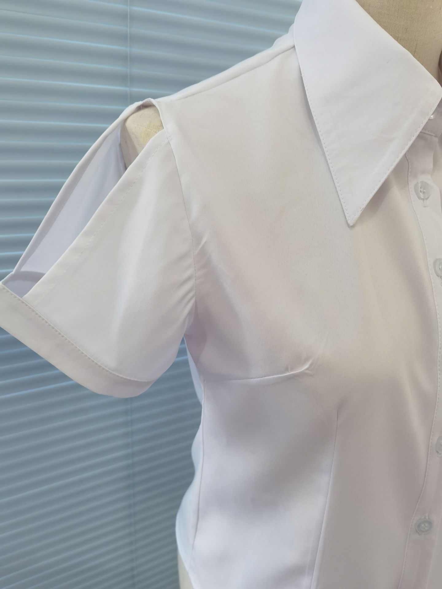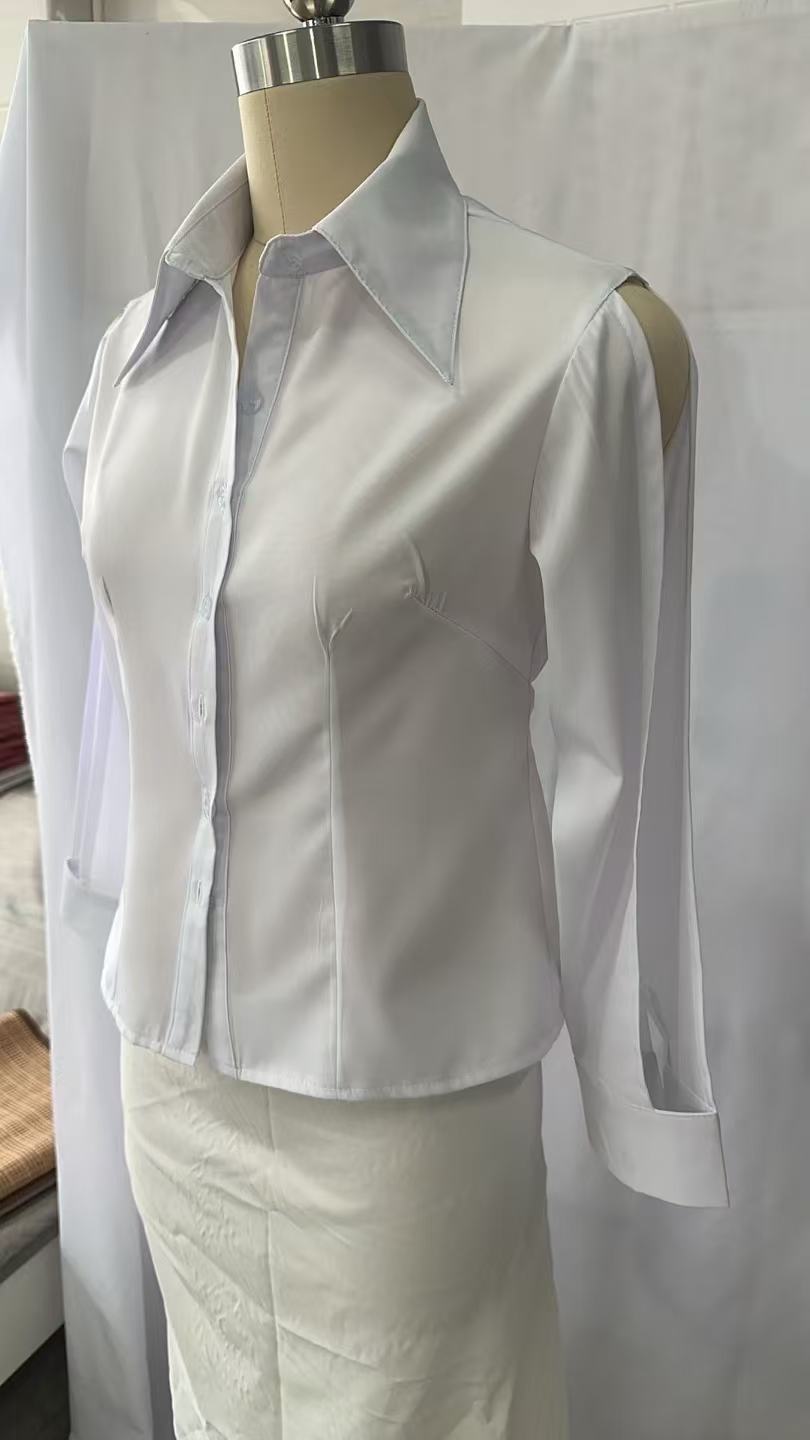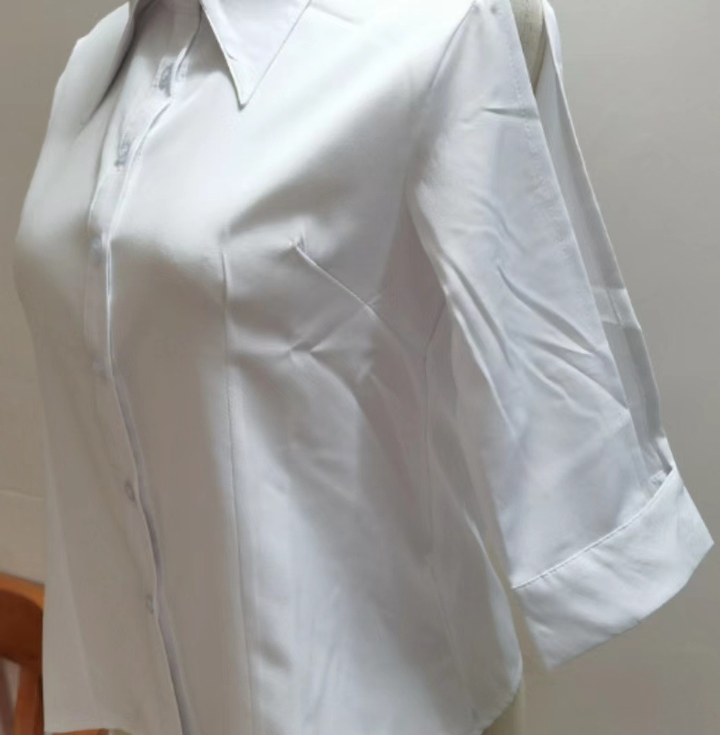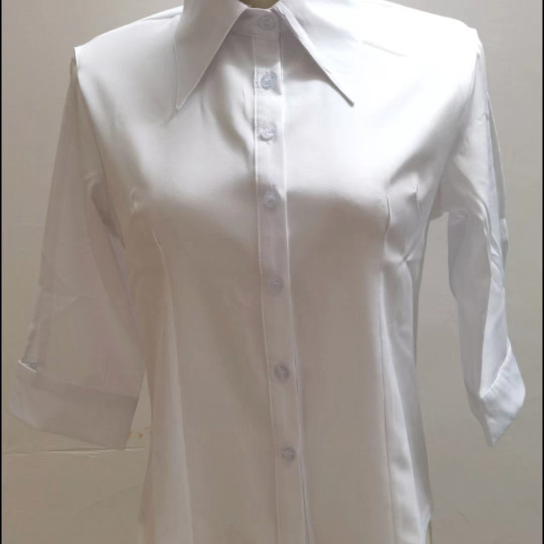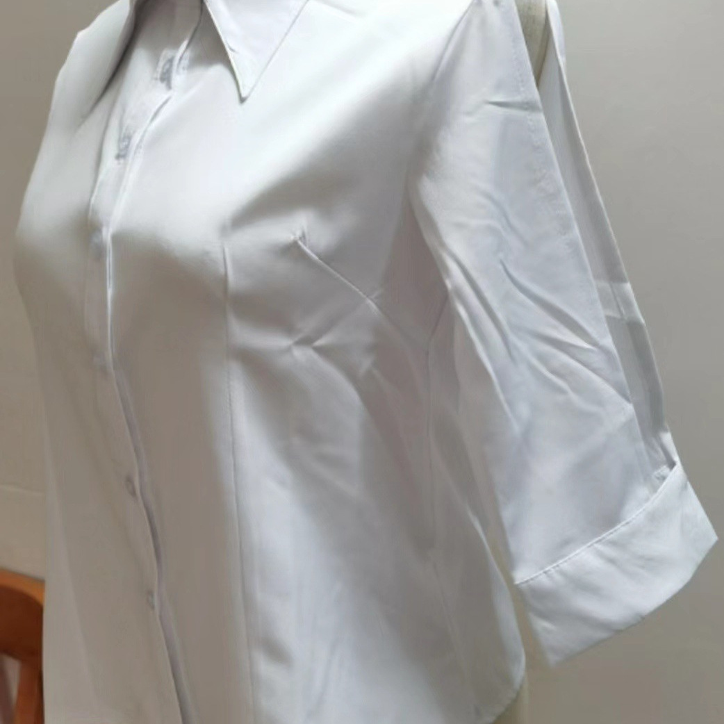 화이트 셔츠 여성용 중간 소매 중공 디자인 센스 반소매 슬림핏 셔츠 봄과 가을 새 여름 여성용 프렌치 탑스토어 가기