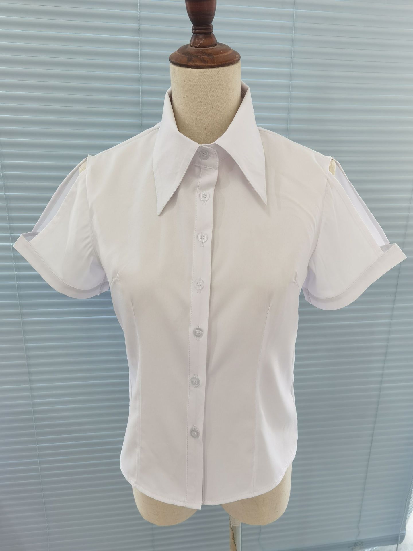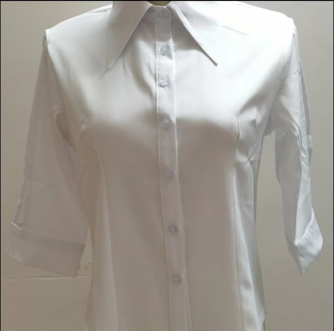 화이트 셔츠 여성용 중간 소매 중공 디자인 센스 반소매 슬림핏 셔츠 봄과 가을 새 여름 여성용 프렌치 탑
