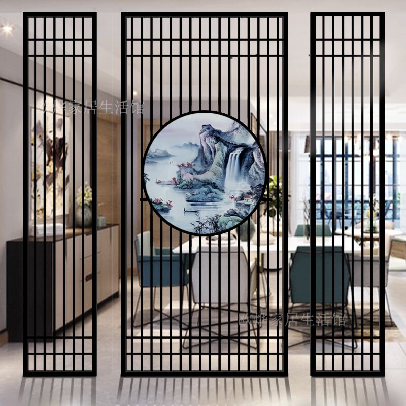 새로운 중국식 철 파티션 스크린 거실 입구 문 음영 베란다 스테인레스 스틸 사무실 식당 장식 빛 럭셔리스토어 가기