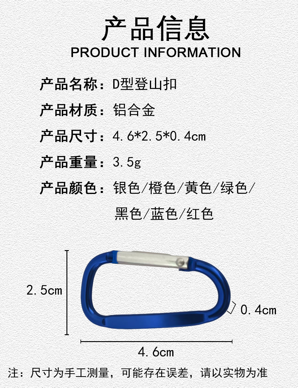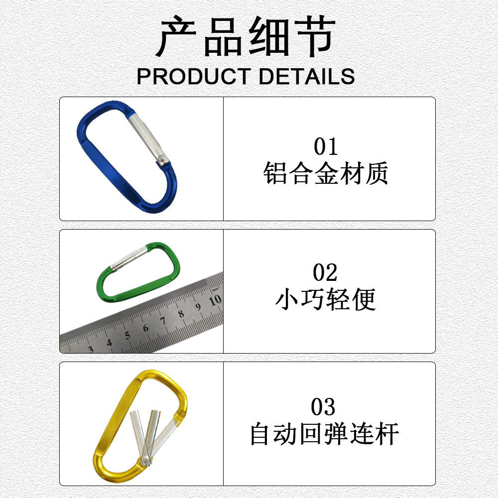 공장 공급 하이 퀄리티 No. 5 D 유형 압축 알루미늄 합금 카라비너 야외 교수형 버클 빠른 교수형 키 체인스토어 가기