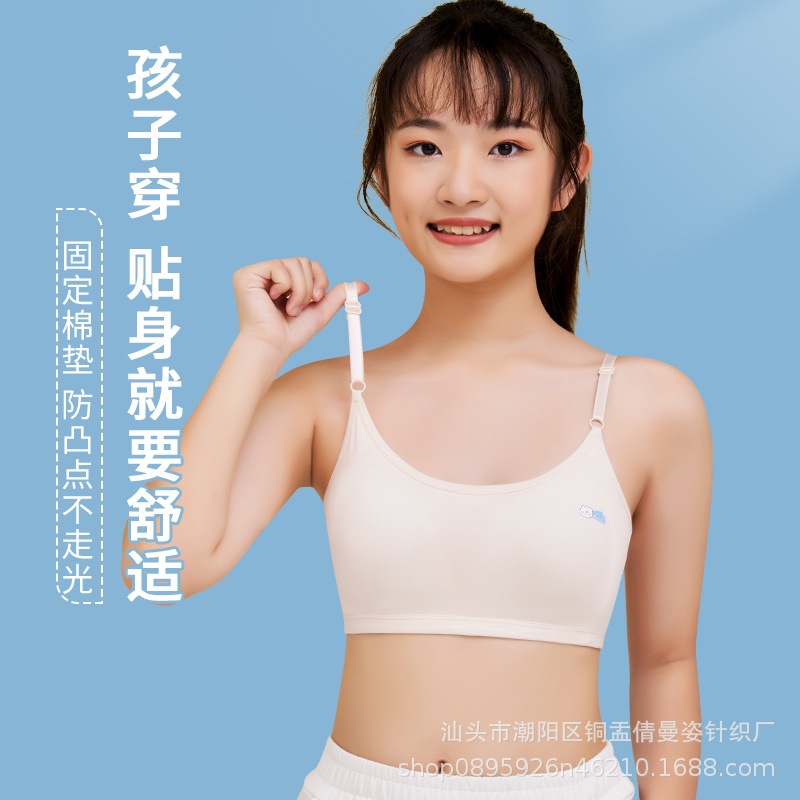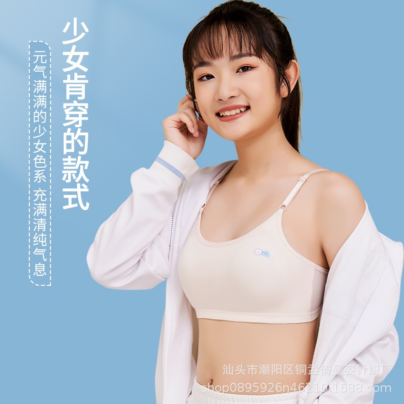 새로운 순면 소녀 브라 원피스 가슴 패드 걷기 방지 여성 중학생 고등학생 발달 속옷 브라스토어 가기