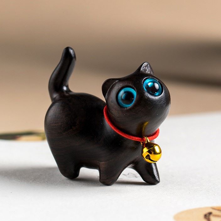 녹색 백단향 흑단 귀여운 새끼 고양이 장식품 동물 창조적 인 나무 조각 고양이 간단한 자동차 1027j스토어 가기