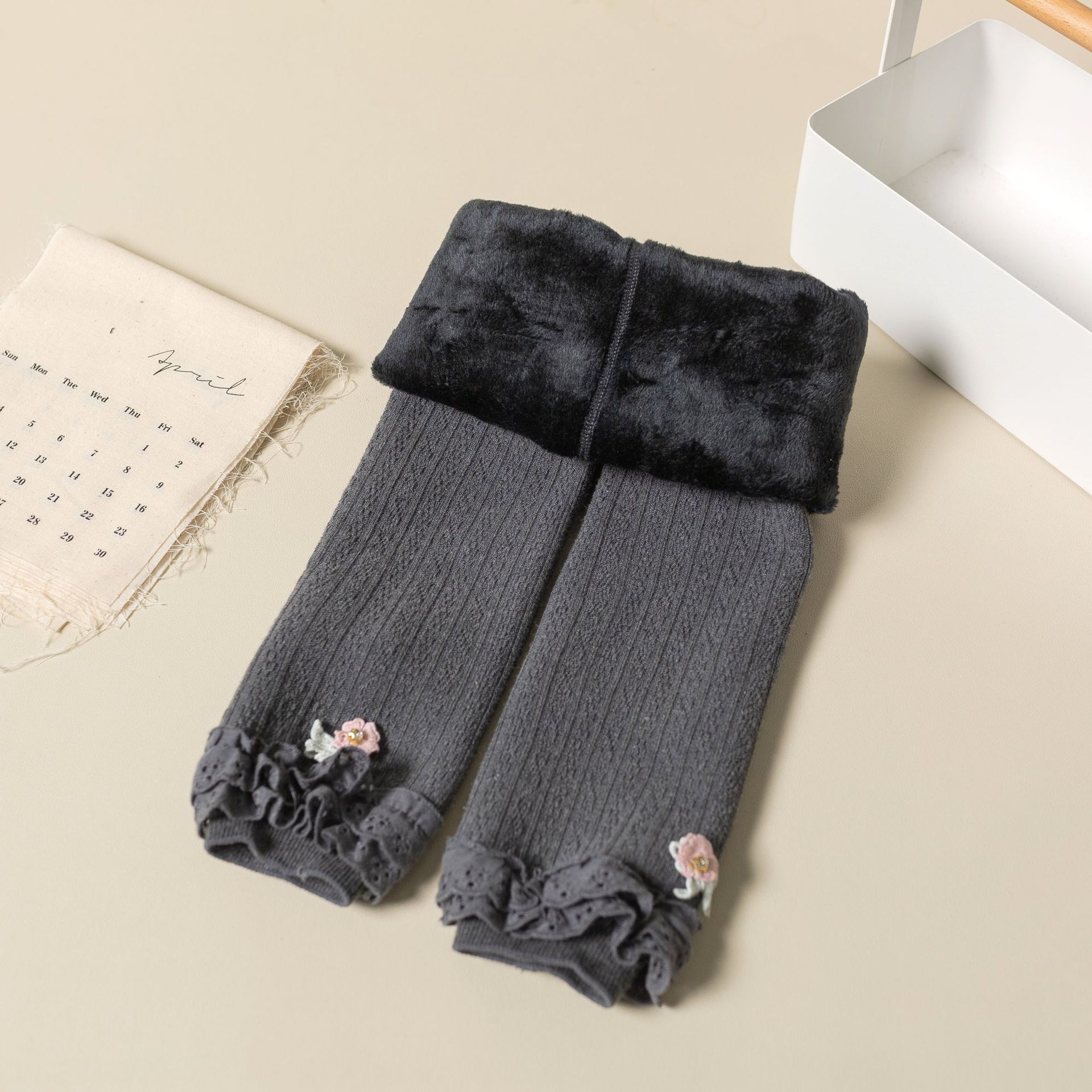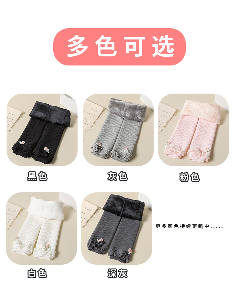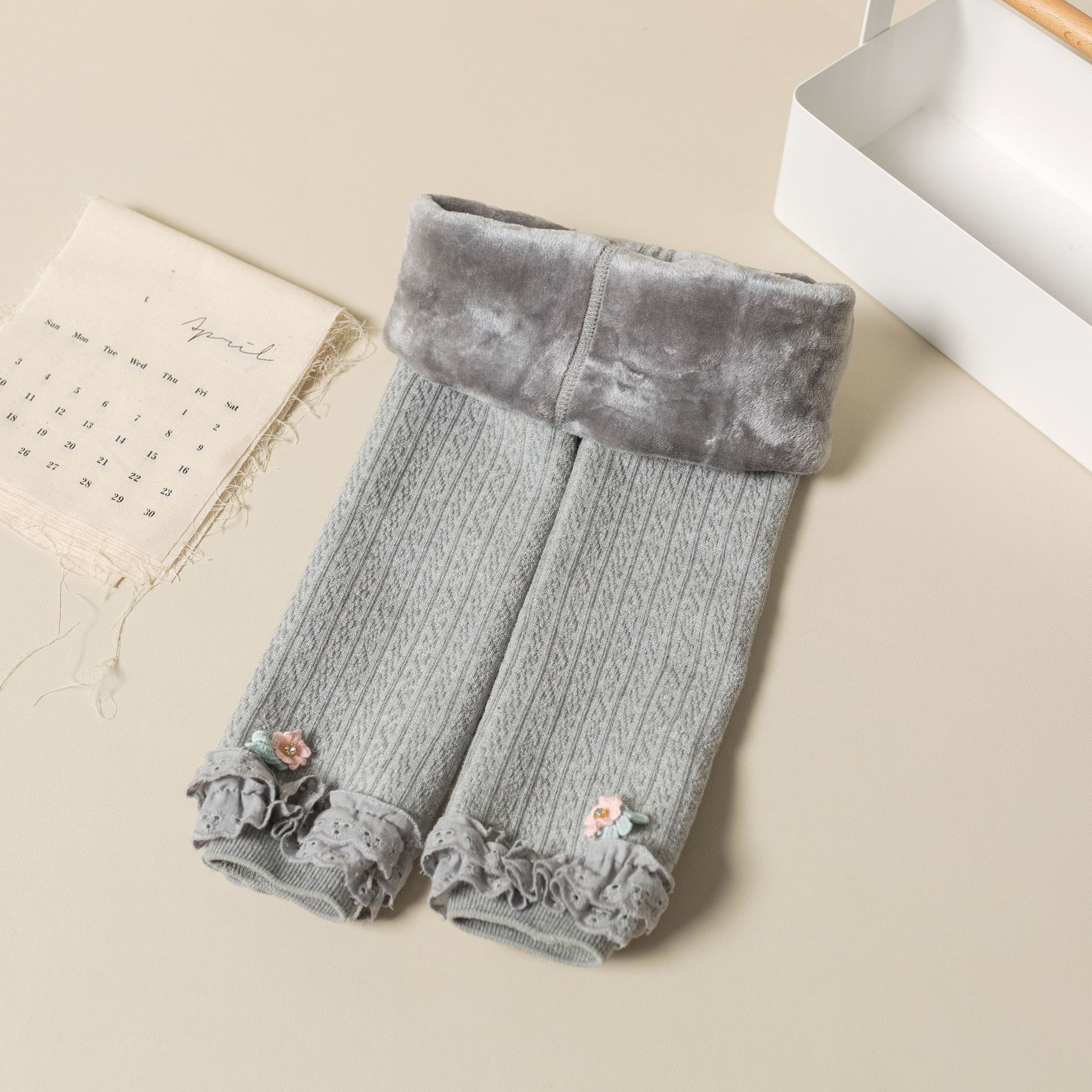 두꺼운 레이스 여아 레깅스 가을겨울용 작은 꽃무늬 아동 양말 한국 스타일 5가지 색상 꽈배기 아기 9부 바지