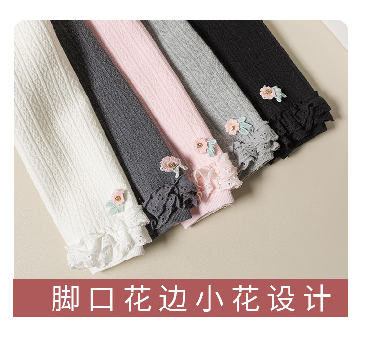 두꺼운 레이스 여아 레깅스 가을겨울용 작은 꽃무늬 아동 양말 한국 스타일 5가지 색상 꽈배기 아기 9부 바지스토어 가기