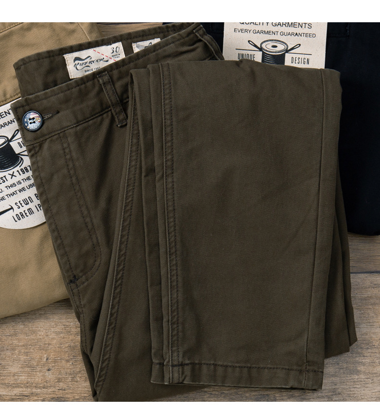 미국 레트로 스타일 순면 두꺼운 작업복 바지 남성용 가을 겨울 스트레이트 팬츠 아미 카키 캐주얼 바지 레트로 트렌드스토어 가기