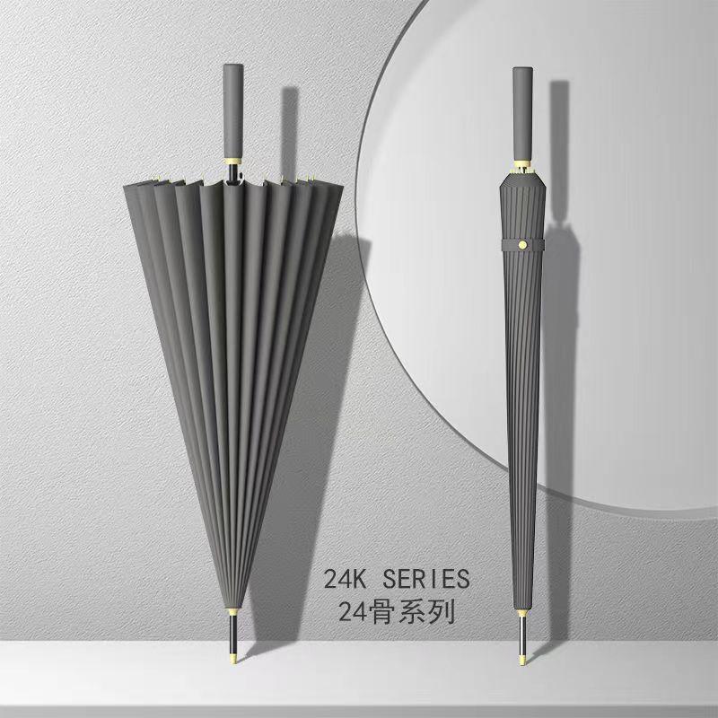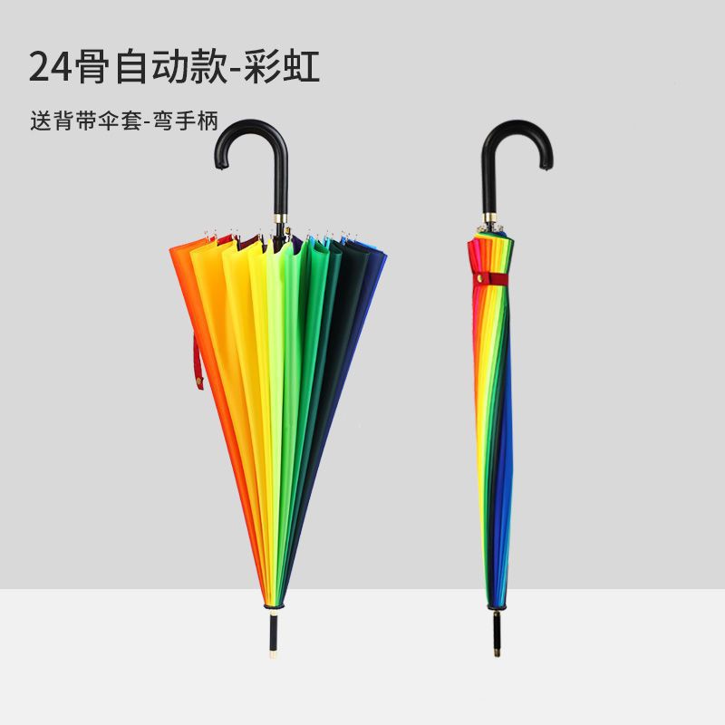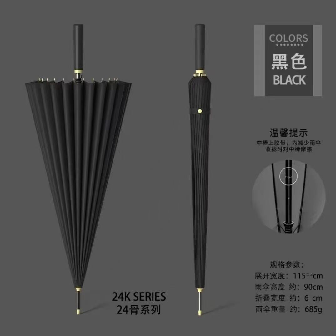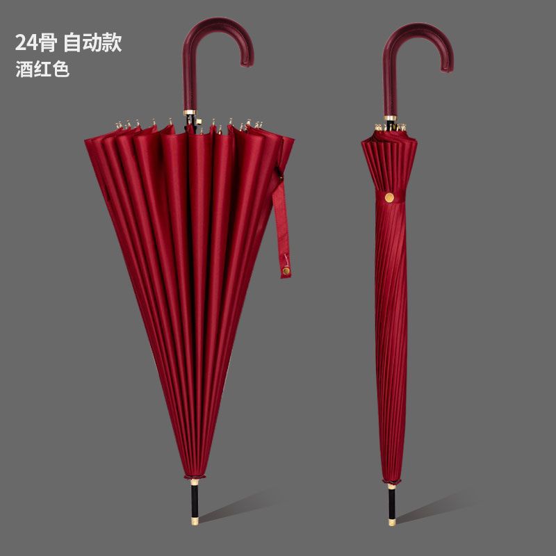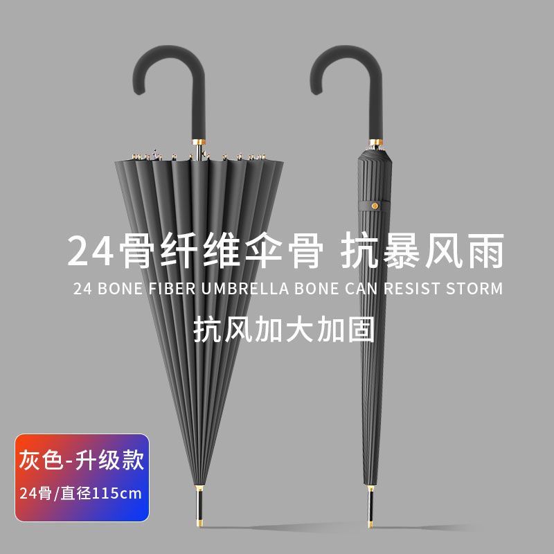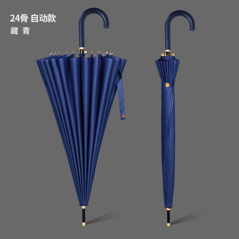 초대형 24 뼈 곡선 손잡이 우산 자동 긴 손잡이 대형 24k 더블 남성용 직선 막대 우산 비즈니스 폭풍 방지 우산