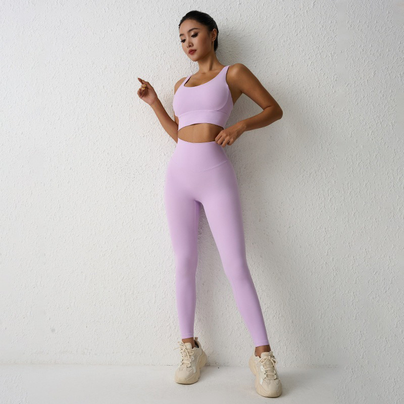 유럽과 미국의 국경을 넘나드는 여성용 요가복 세트, 가슴 패드가 있는 크로스백 브라, 속건성 스포츠 세트, 피트니스복