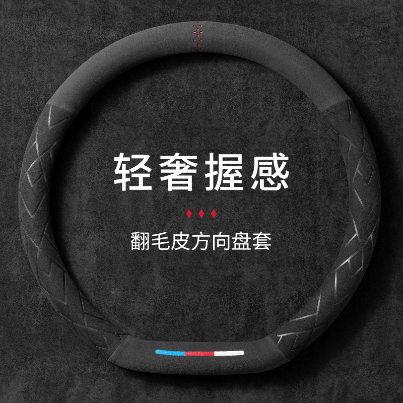 자동차 핸들 커버 스웨이드 미끄럼 방지 땀 흡수 여름 초박형 사계절 자동차 핸들 커버 스웨이드 라운드 D 자형스토어 가기