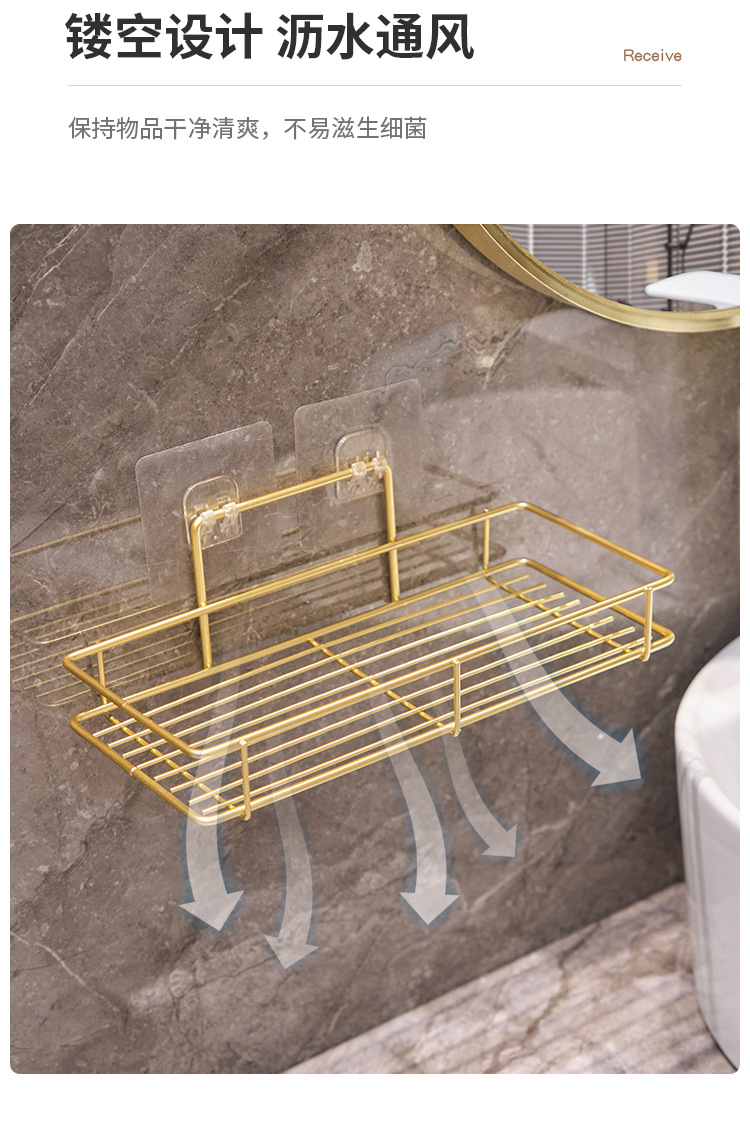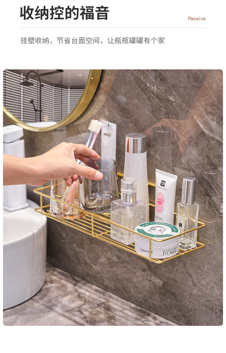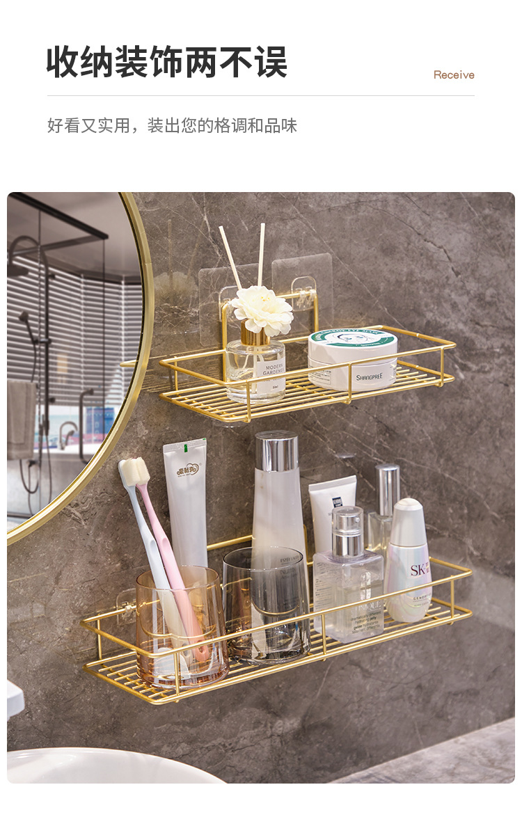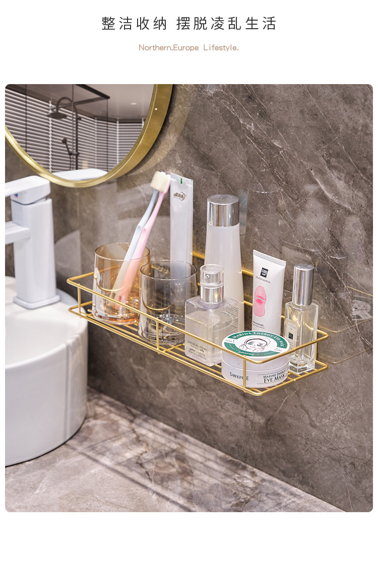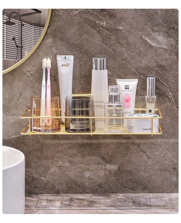 벽걸이형 욕실 수납 선반, 고급스러운 무타공 세면대 수납 용품 선반, 욕실 벽면 선반