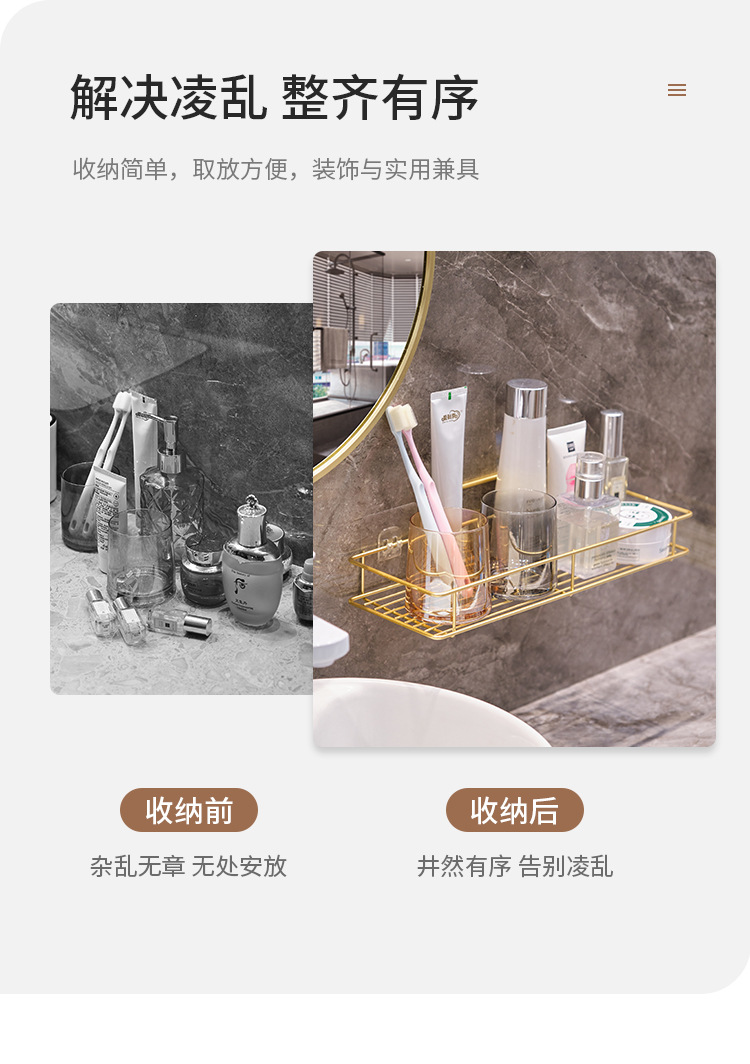 벽걸이형 욕실 수납 선반, 고급스러운 무타공 세면대 수납 용품 선반, 욕실 벽면 선반스토어 가기