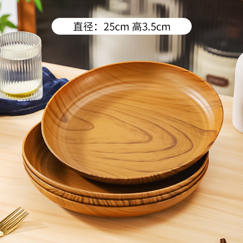 • 【26CM】우드 패턴 원형 접시 중간 사이즈