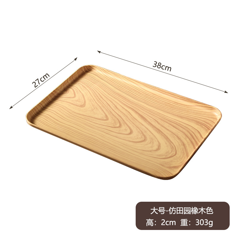 크로스 보더 라이트 럭셔리 플라스틱 일본식 모조 우드 그레인 뼈 뱉기 접시 가정용 트레이 찻잔 접시 두꺼운 직사각형 티 트레이