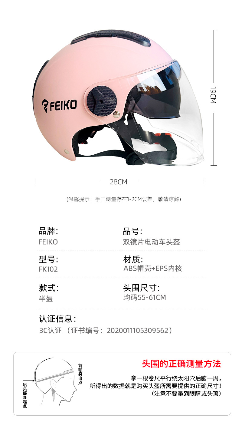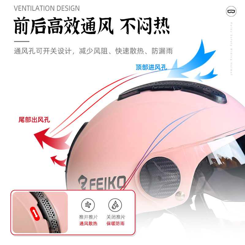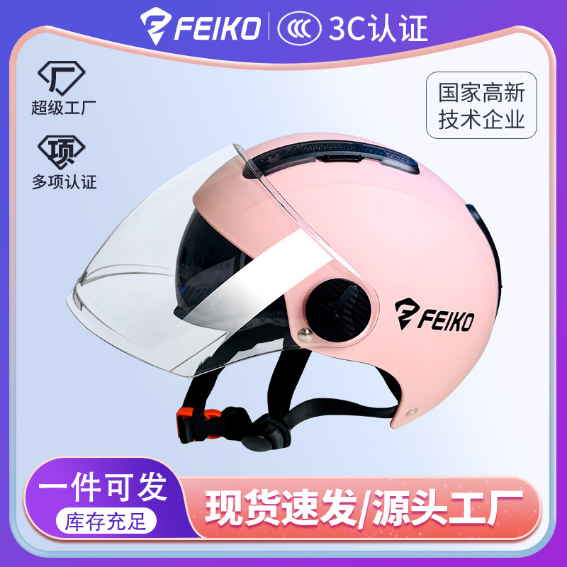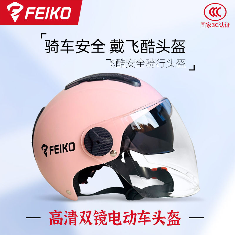 FEIKO 브랜드의 새로운 국가 표준 3C 인증 전기 자동차 헬멧 오토바이 더블 렌즈 안전 헬멧 사계절 유니버설스토어 가기