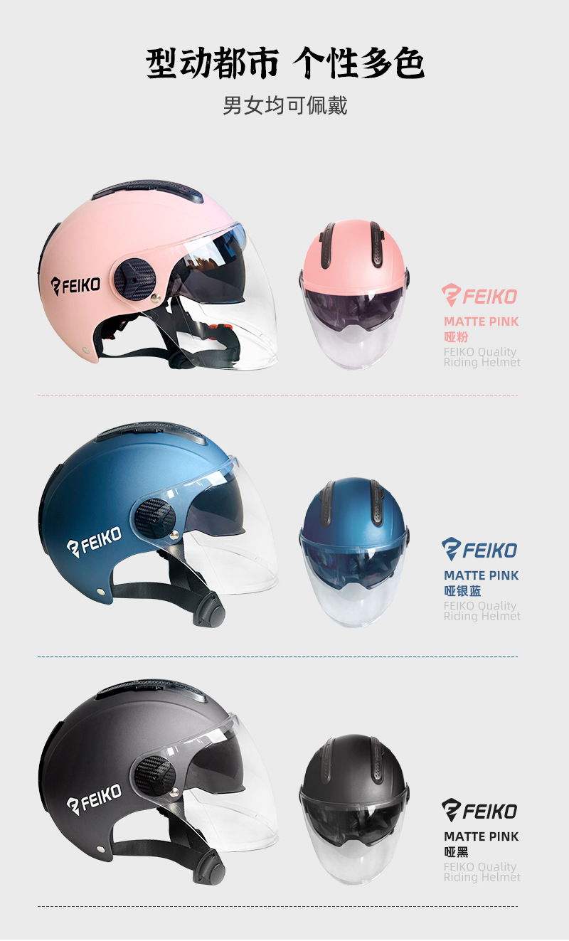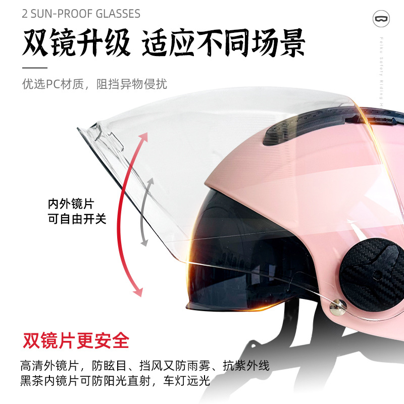 FEIKO 브랜드의 새로운 국가 표준 3C 인증 전기 자동차 헬멧 오토바이 더블 렌즈 안전 헬멧 사계절 유니버설