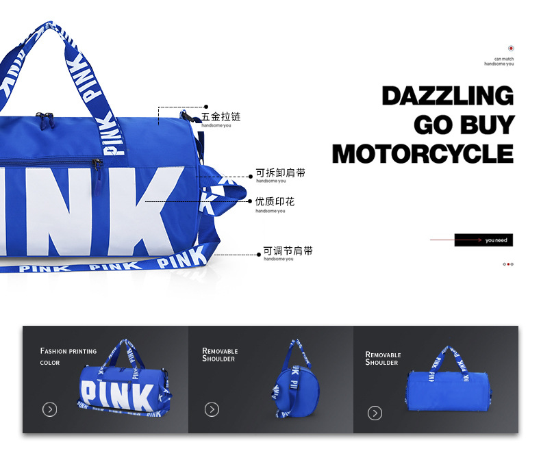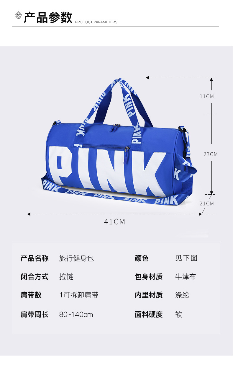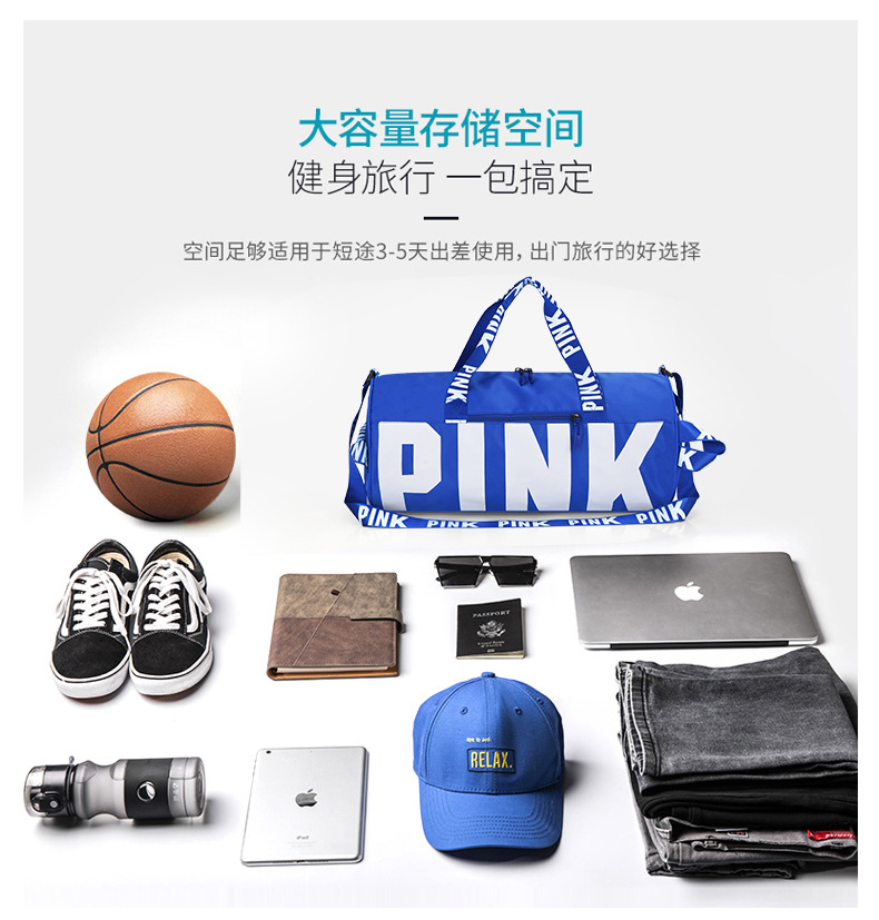 크로스 보더 새로운 핑크 인쇄 스포츠 피트니스 가방 휴대용 어깨 훈련 가방 대용량 단거리 여행 가방