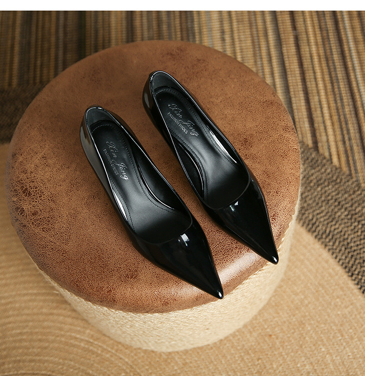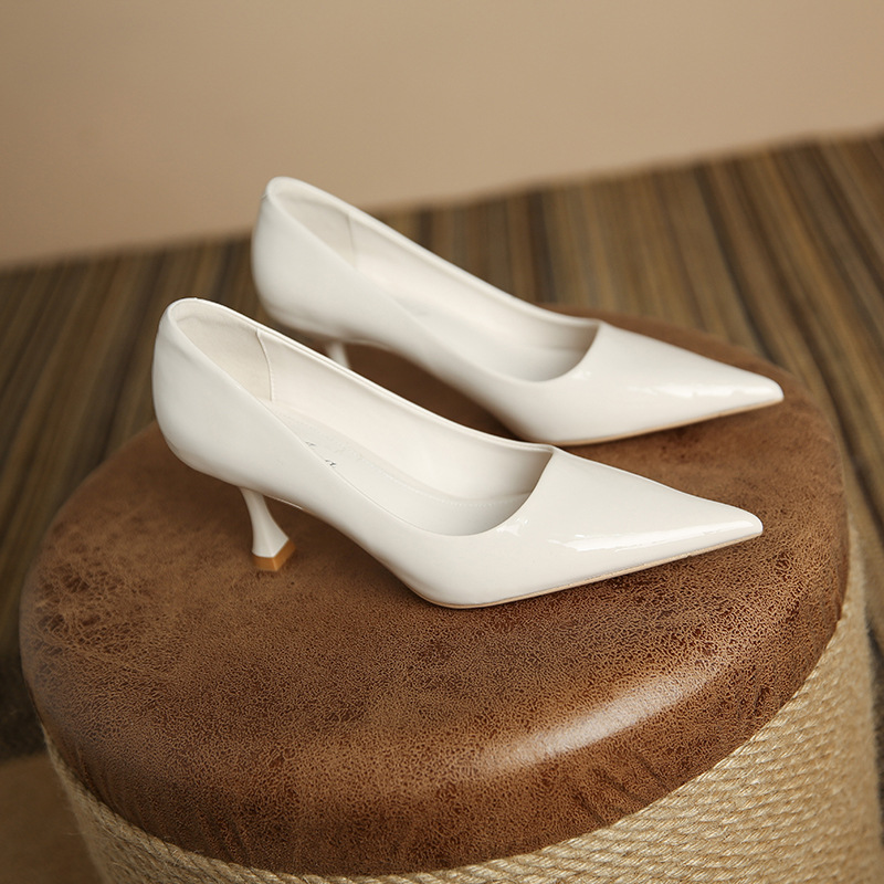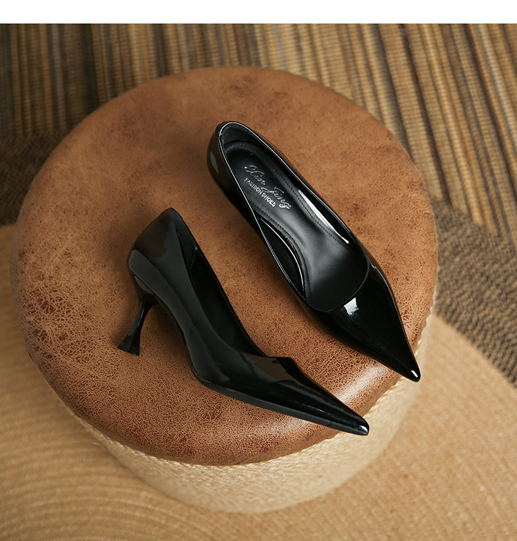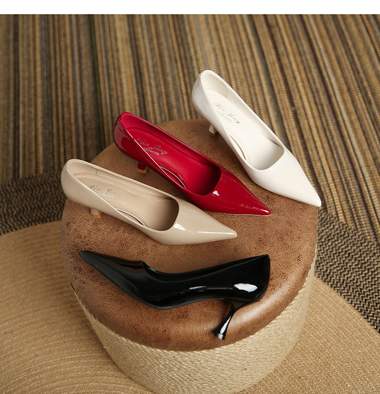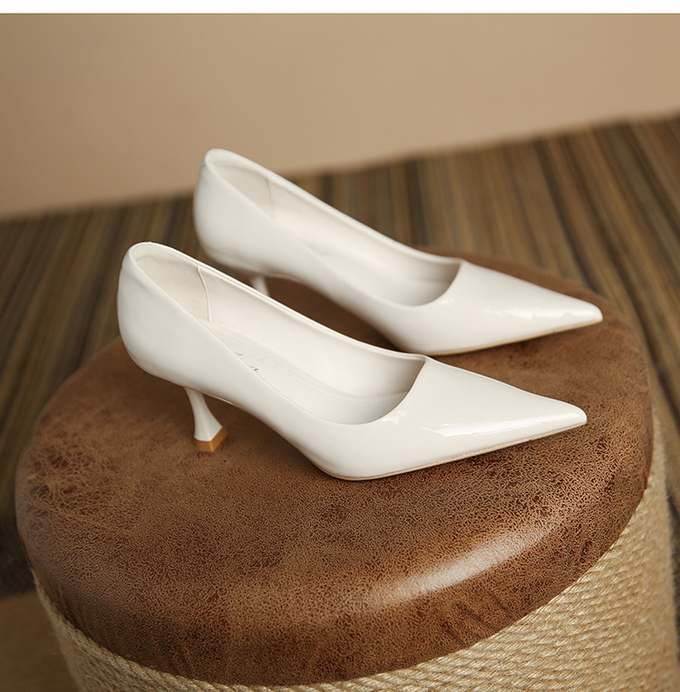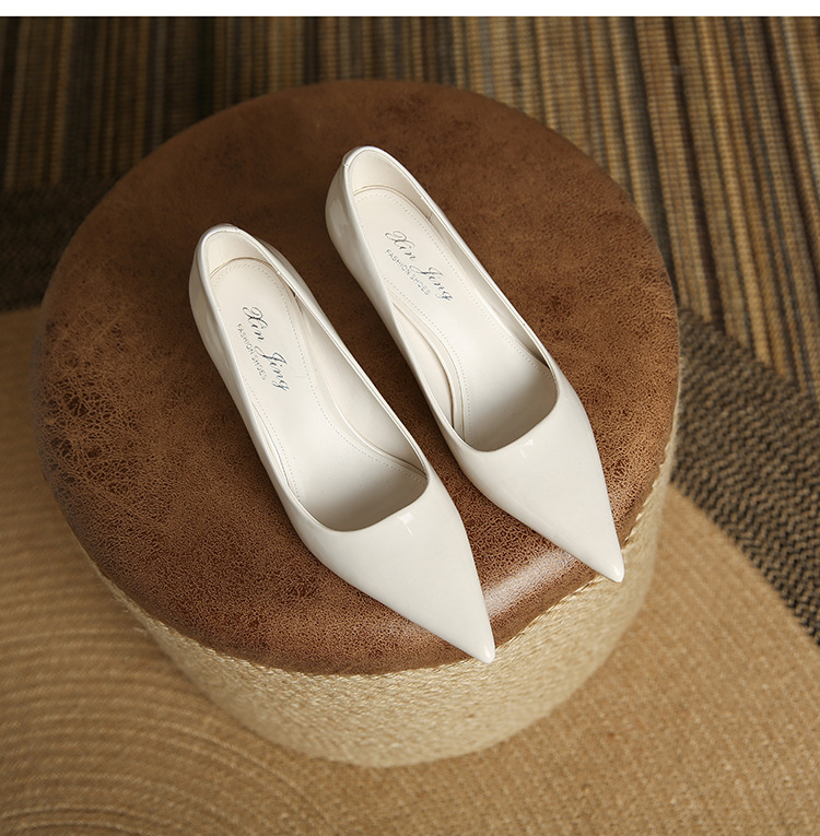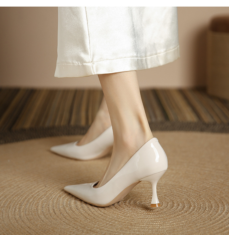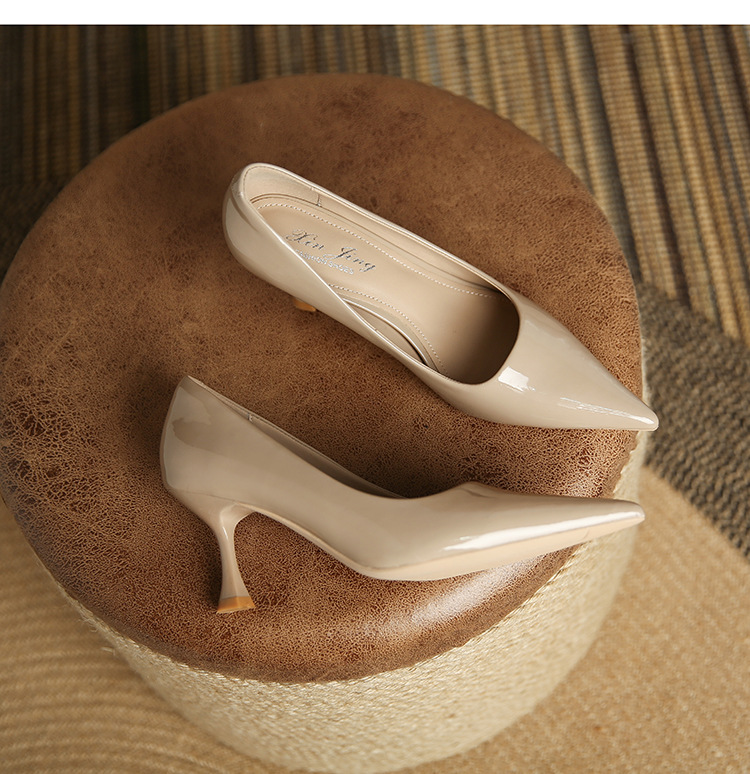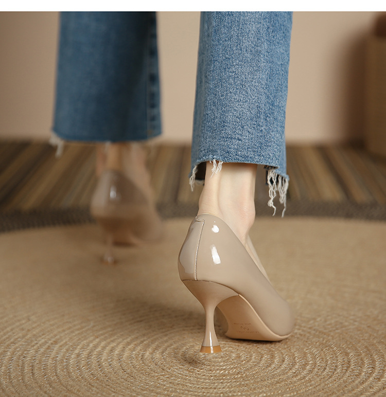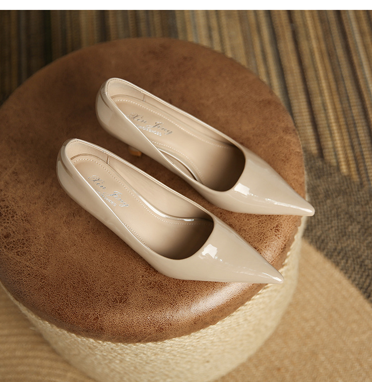 3351-1 프렌치 스타일 뾰족코 하이힐 여성용 신상 출퇴근용 소프트솔 얇은 굽 여성화 누드색 에나멜 하이힐