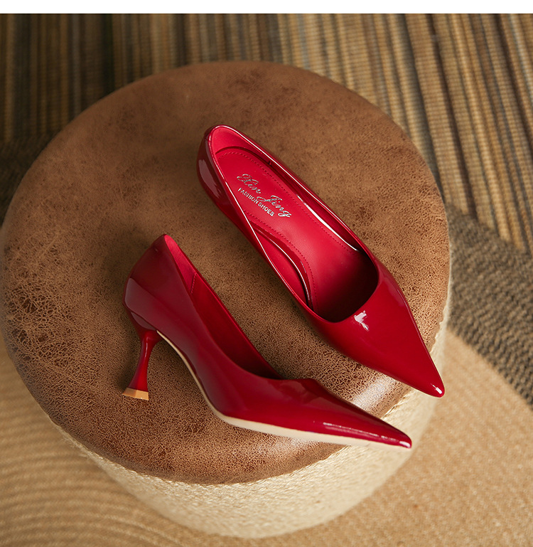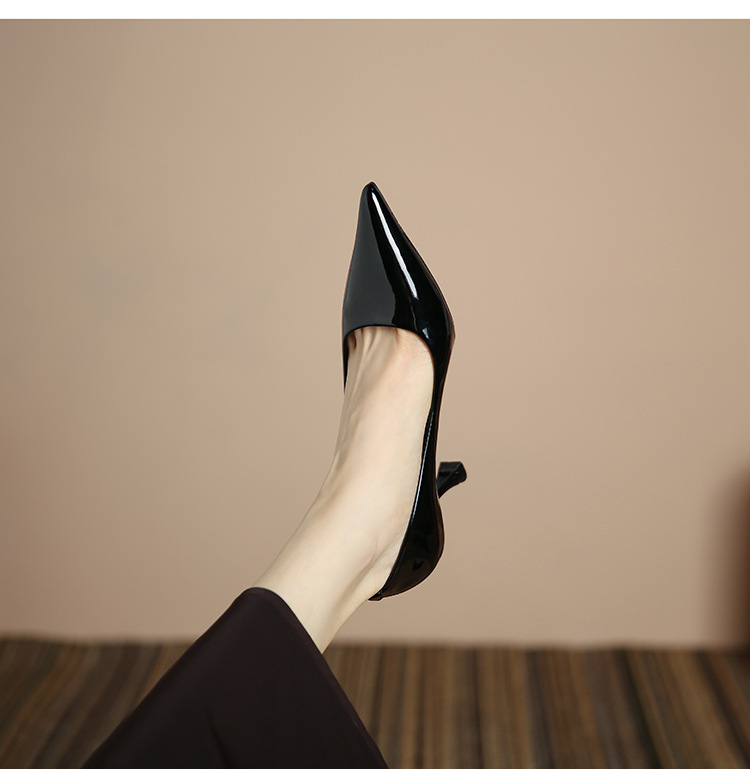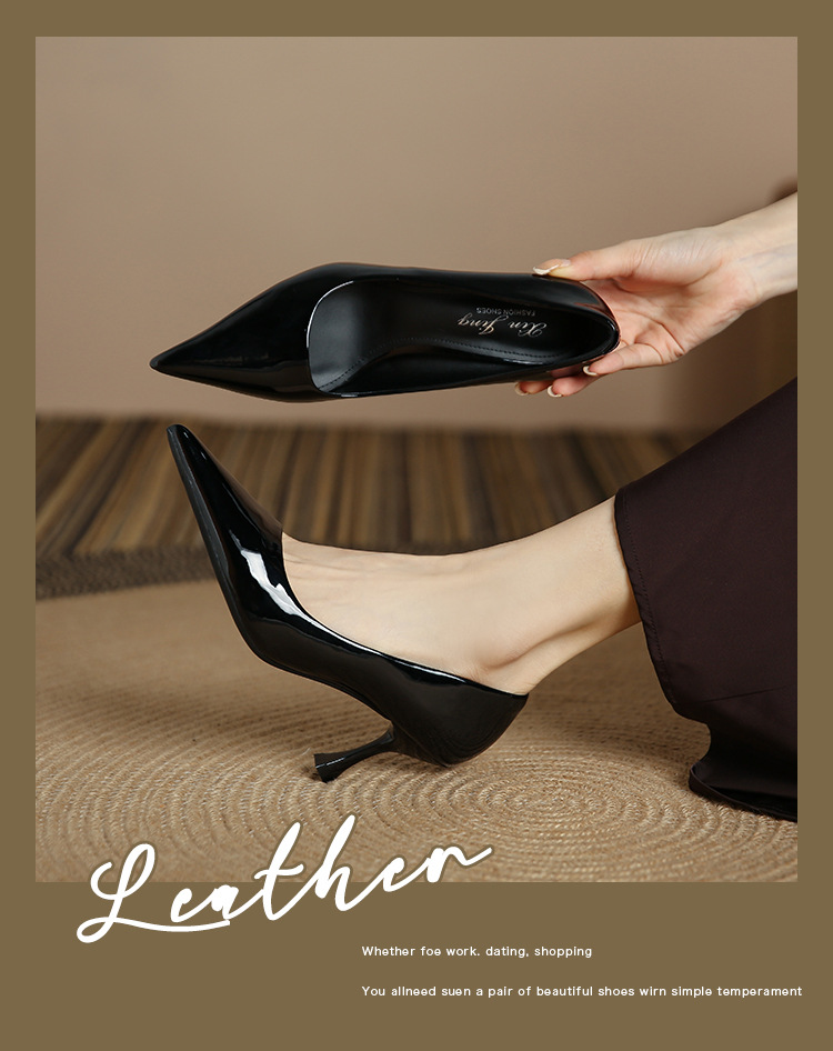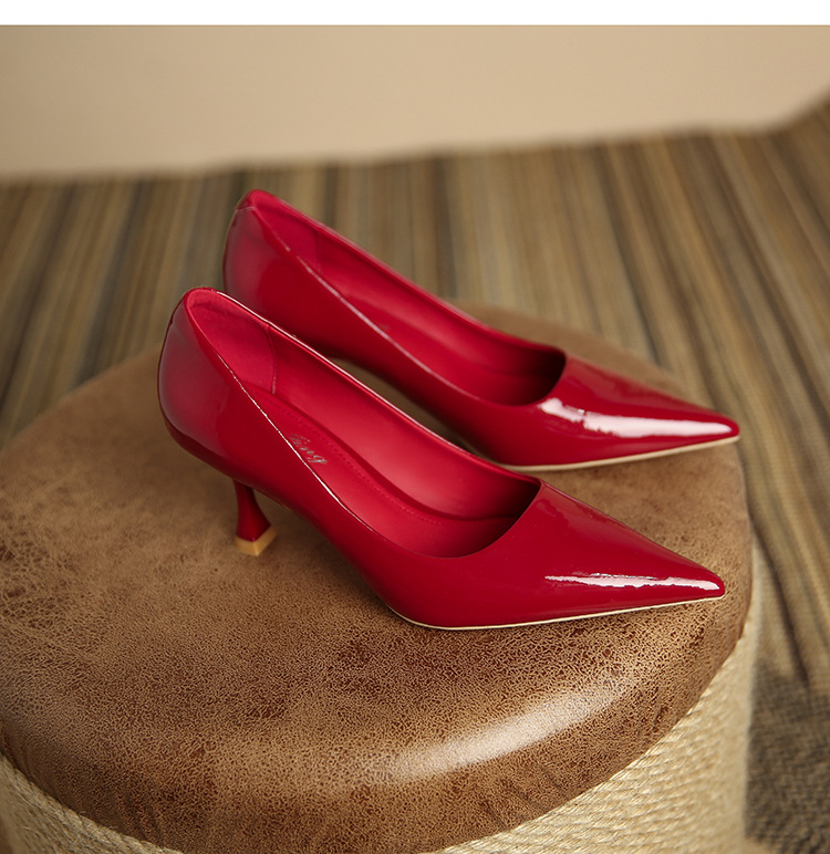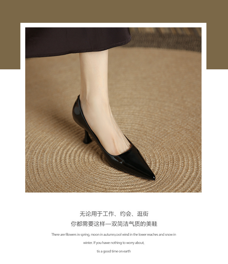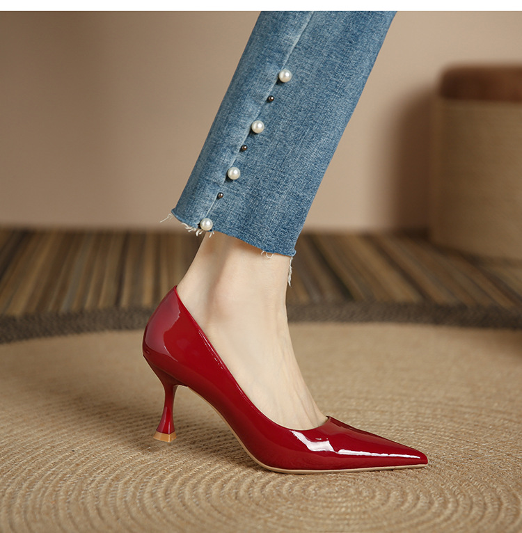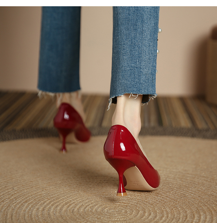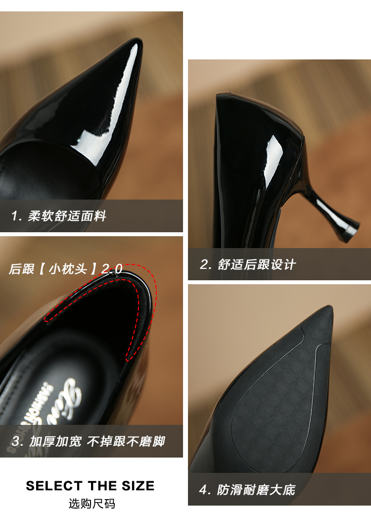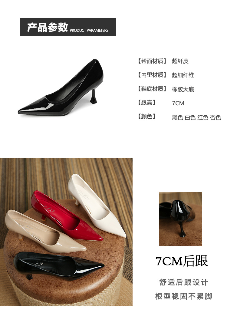 3351-1 프렌치 스타일 뾰족코 하이힐 여성용 신상 출퇴근용 소프트솔 얇은 굽 여성화 누드색 에나멜 하이힐