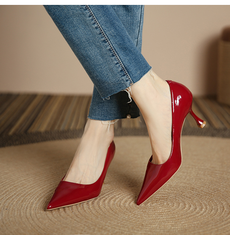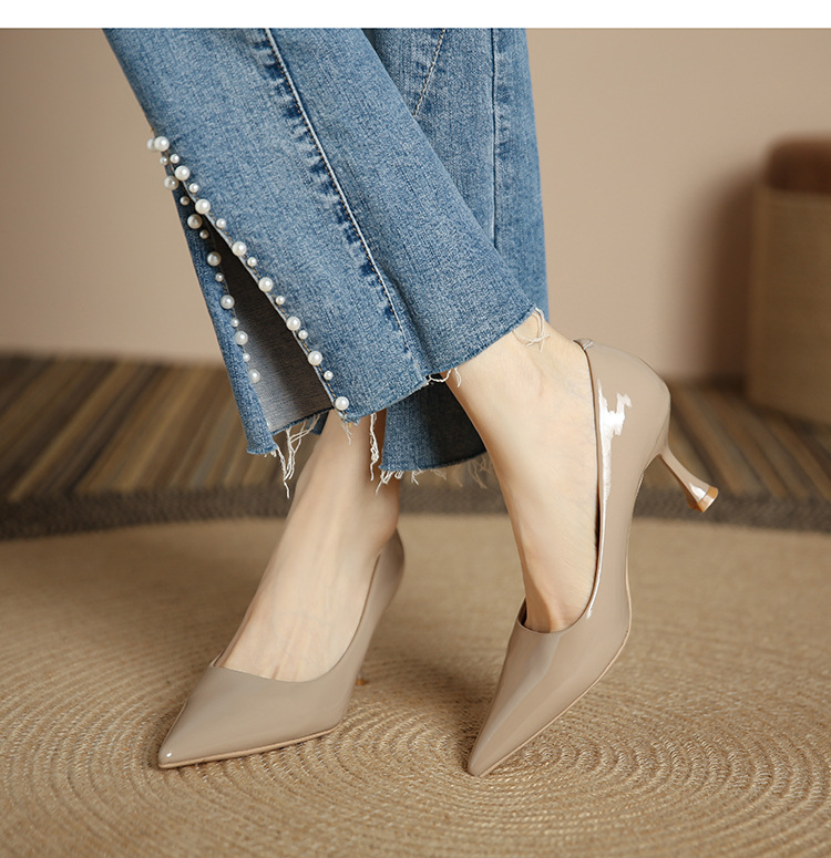 3351-1 프렌치 스타일 뾰족코 하이힐 여성용 신상 출퇴근용 소프트솔 얇은 굽 여성화 누드색 에나멜 하이힐스토어 가기