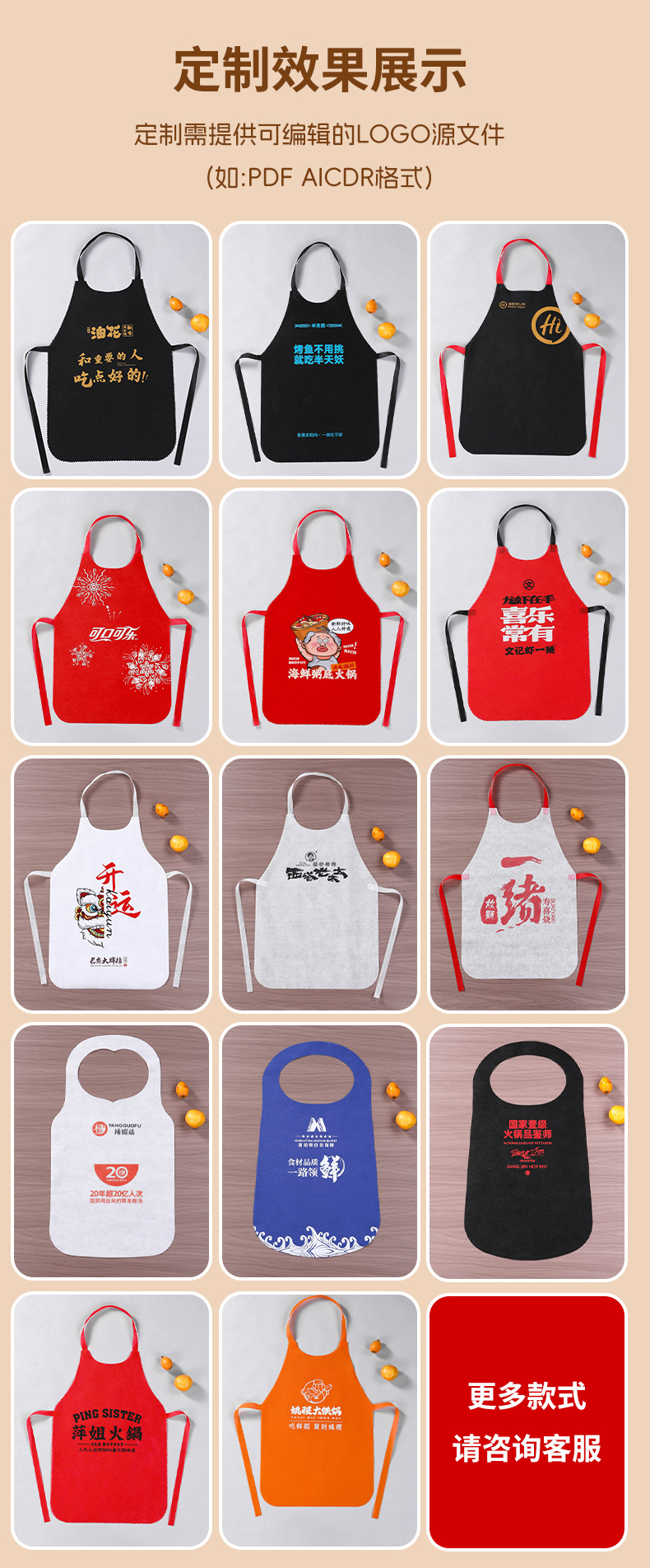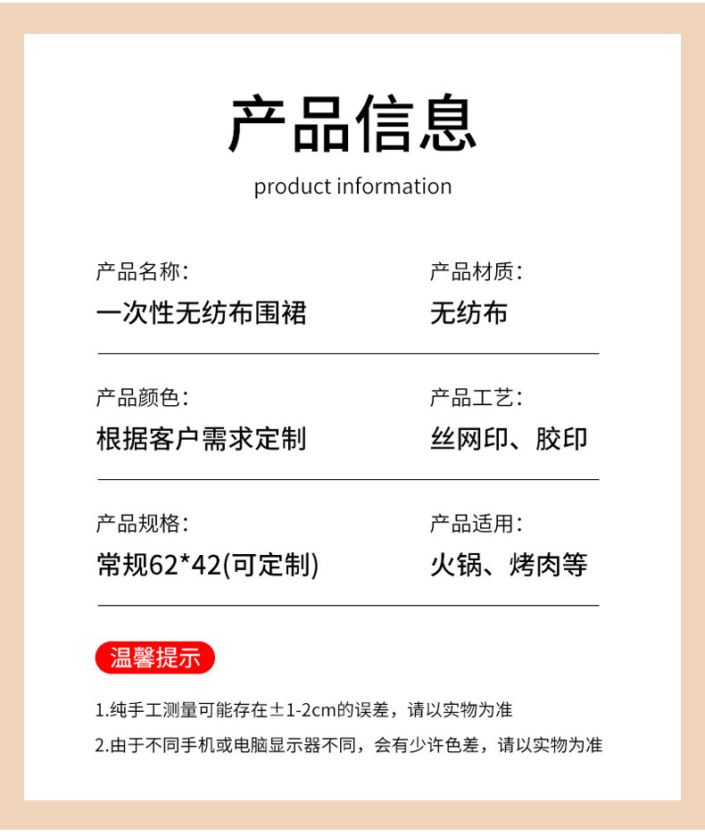 방수 앞치마, 케이터링 일회용 앞치마, 맞춤형 어린이 그림 부직포 일회용 앞치마