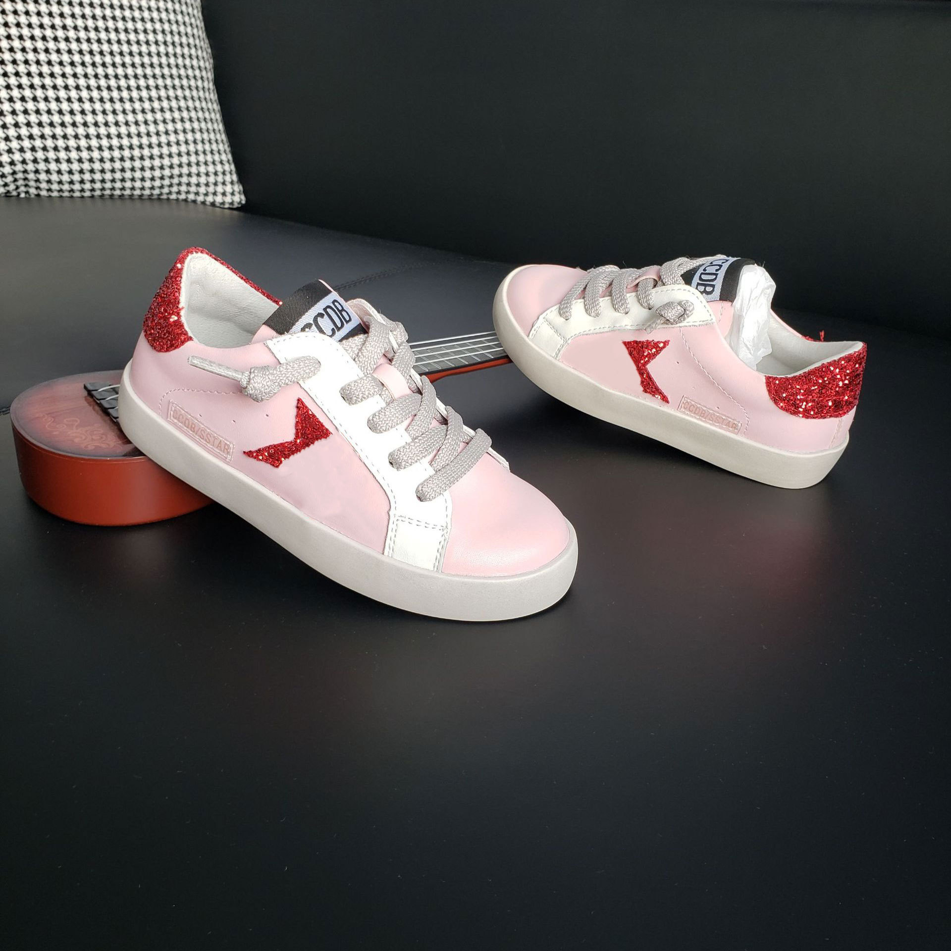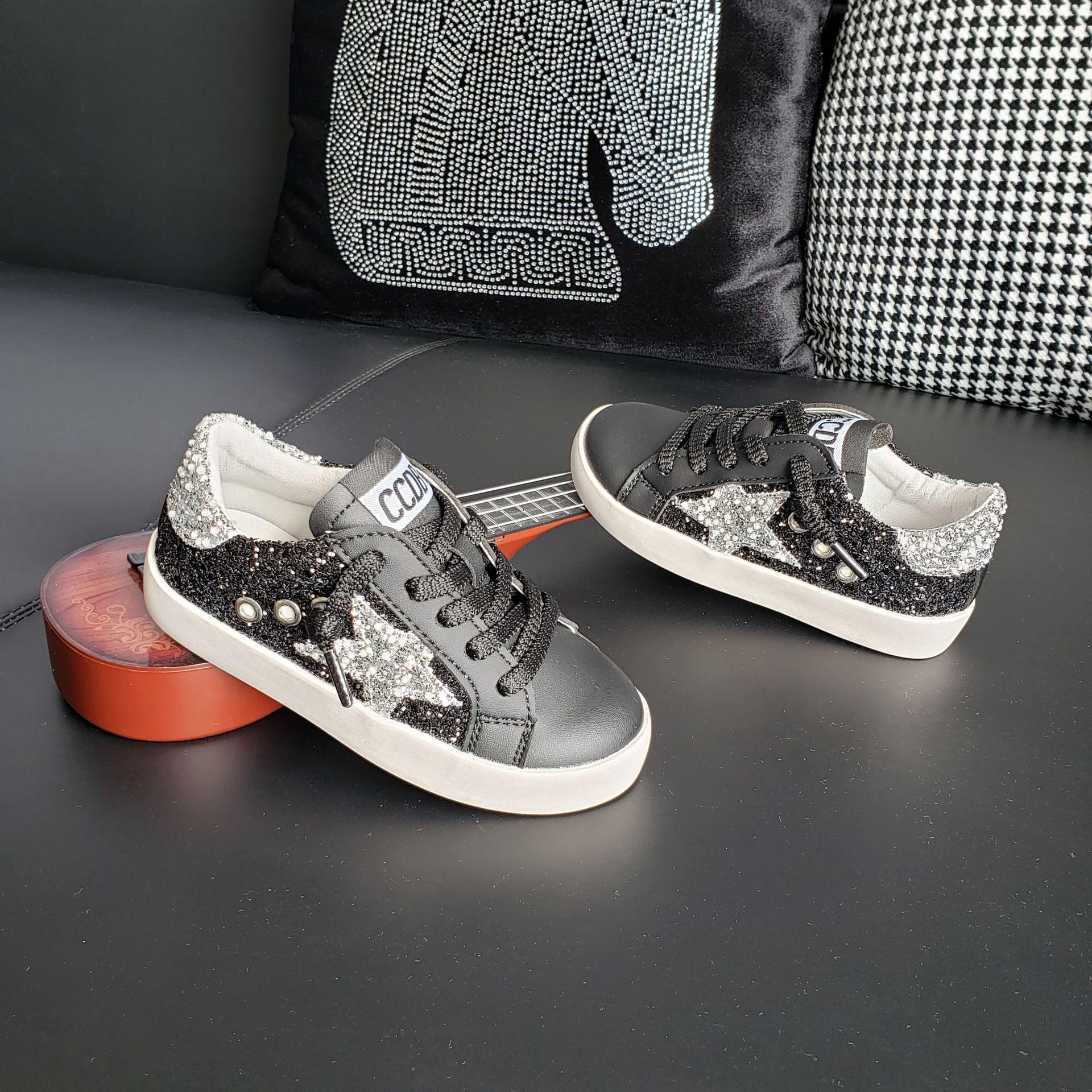 23066 어린이 스타 보드 신발 더러운 신발 구슬 검은 장식 조각 소녀 캐주얼 신발 소년 작은 더러운 신발