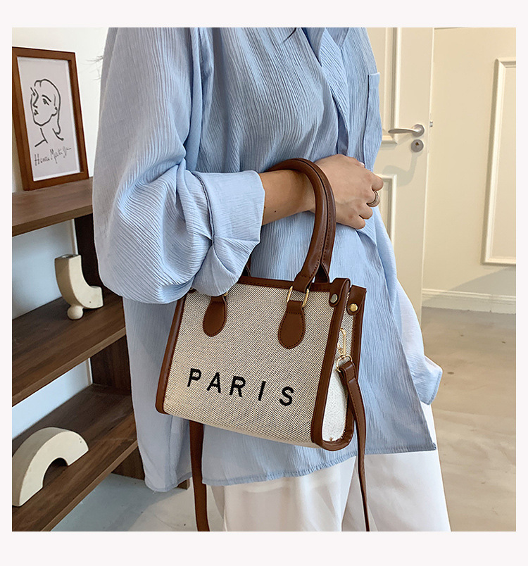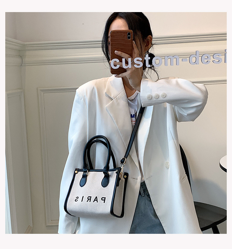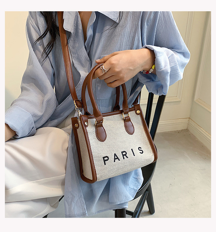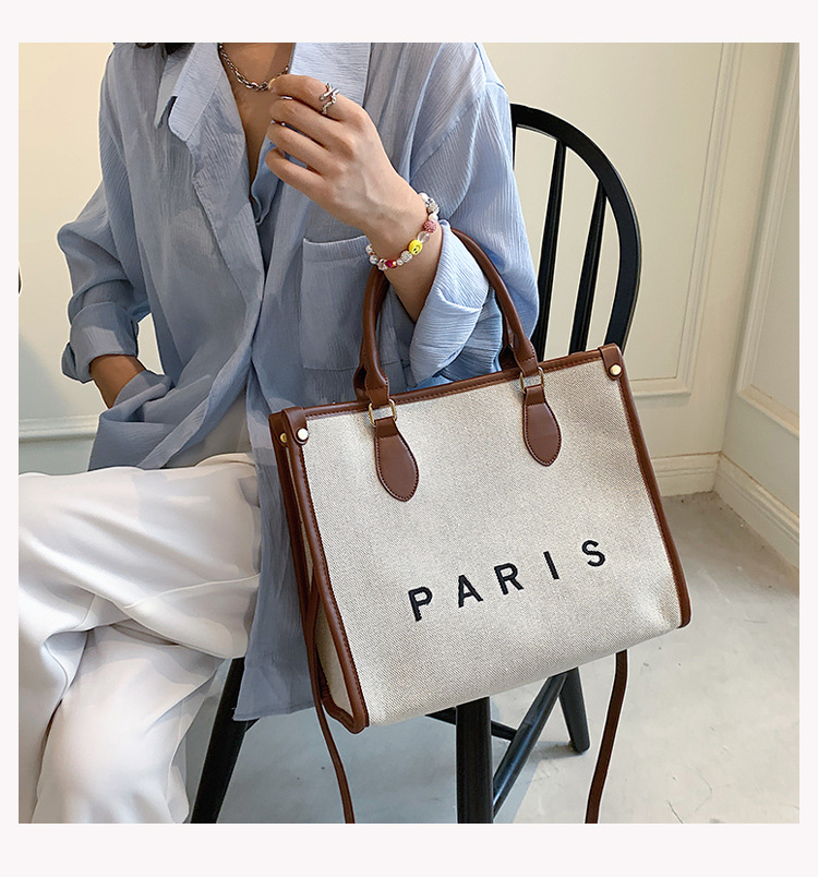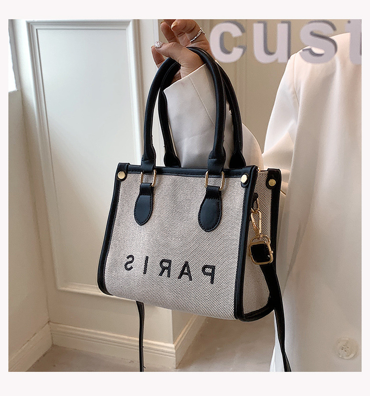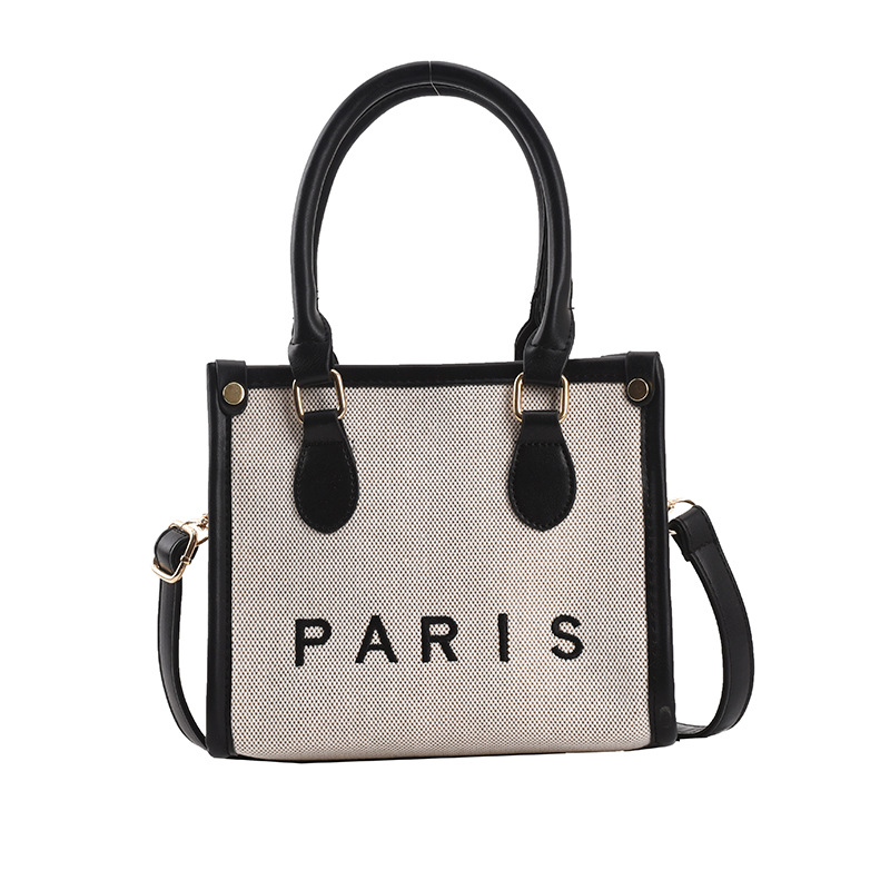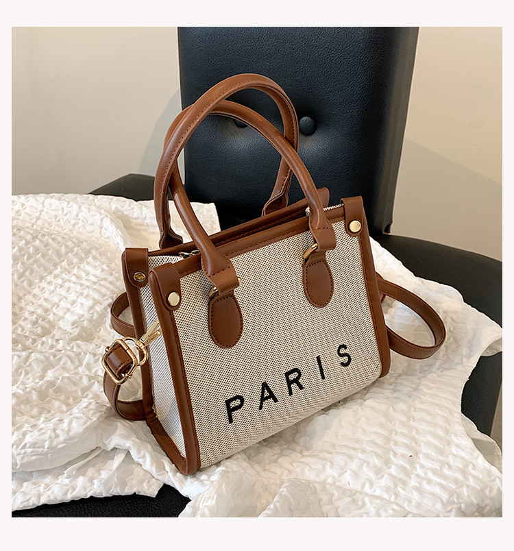 包包女时尚斜挎包2022新款帆布复古时尚托特包小众潮流撞色手提包