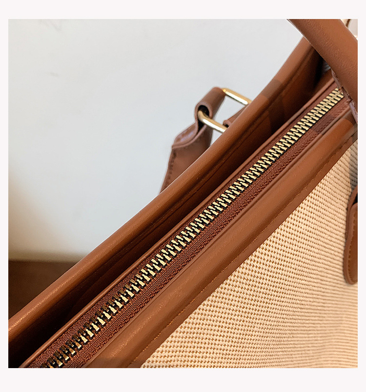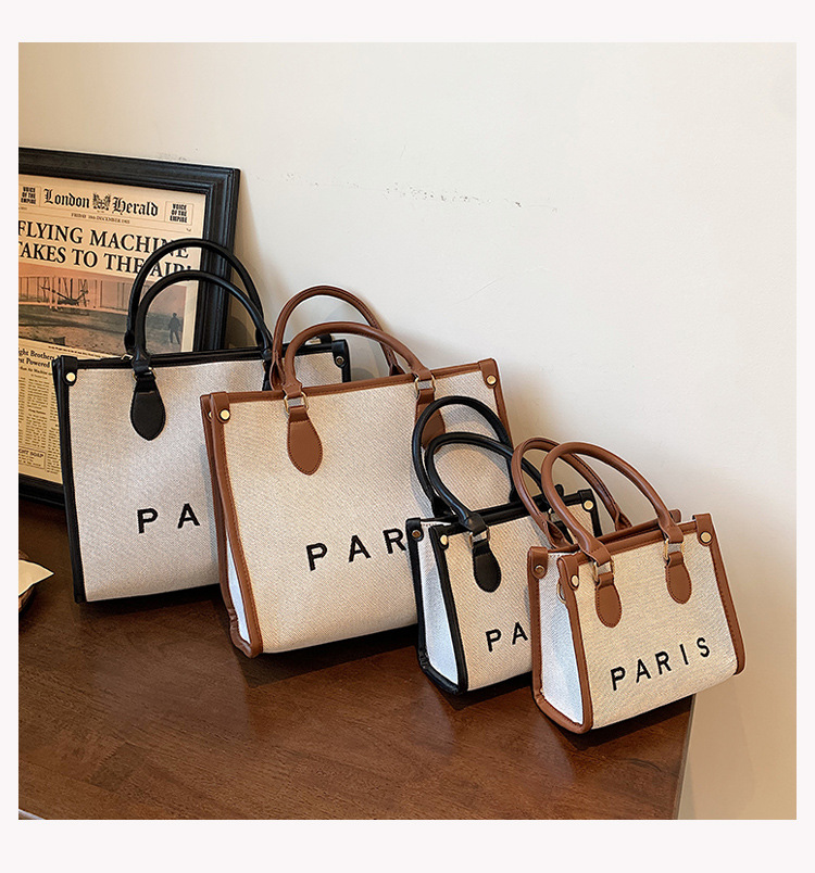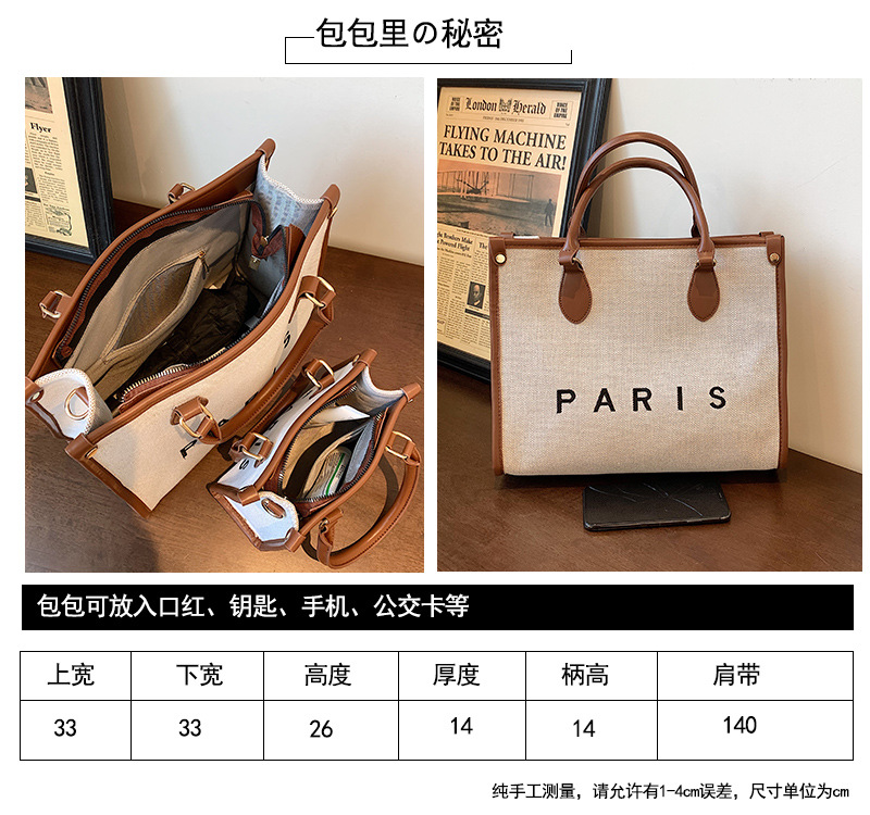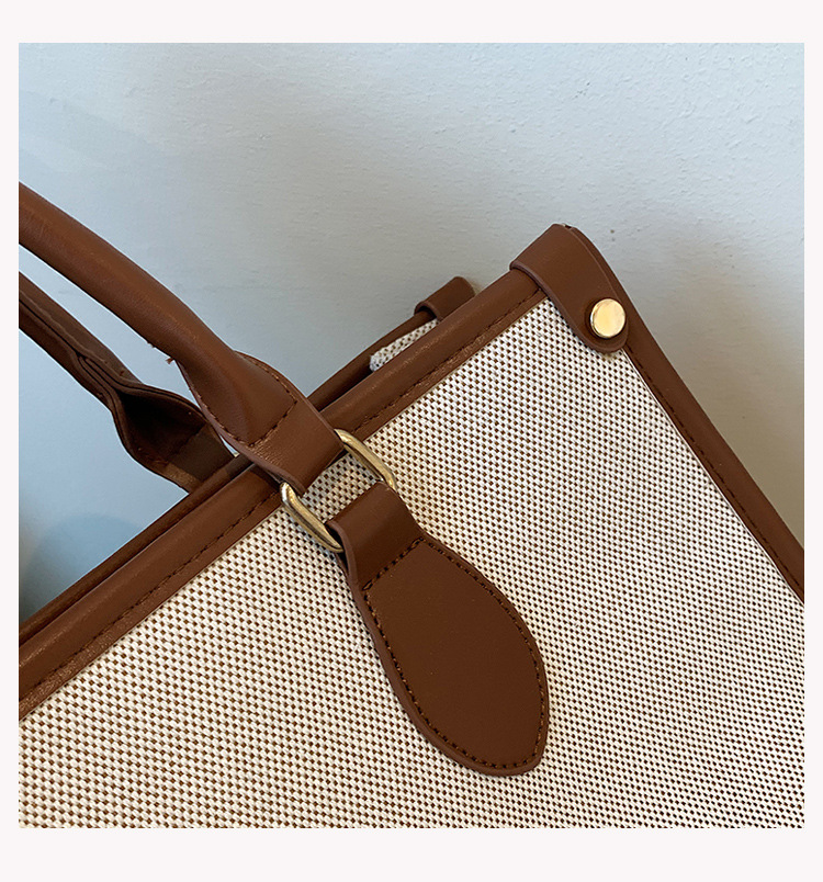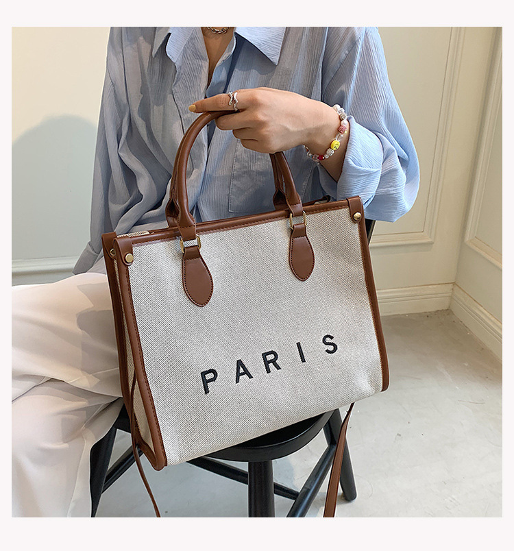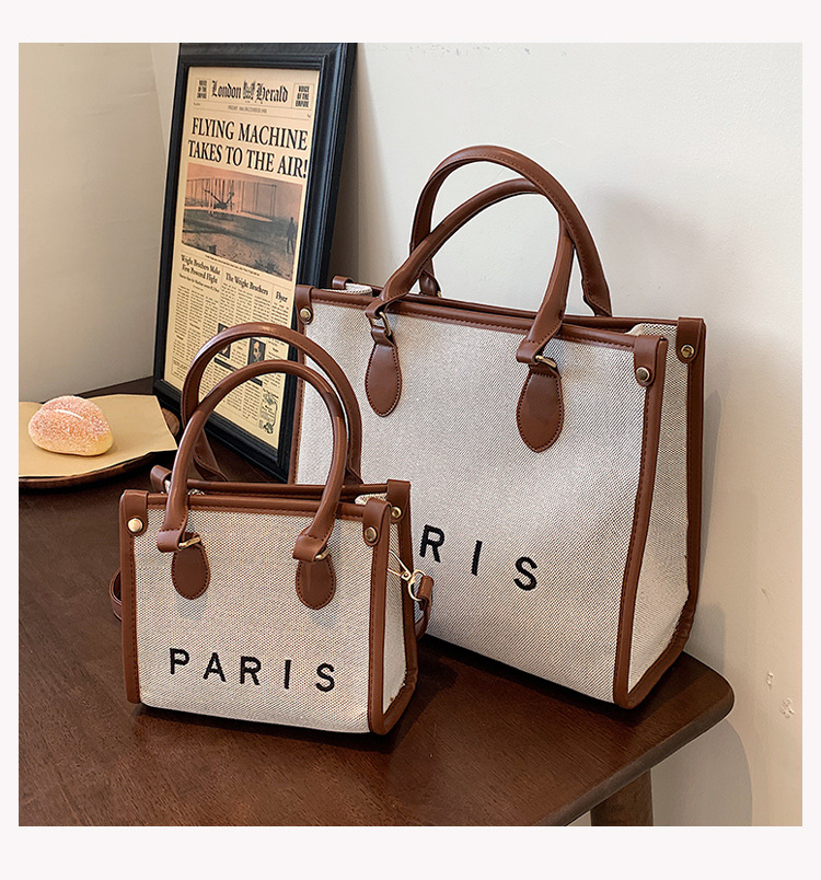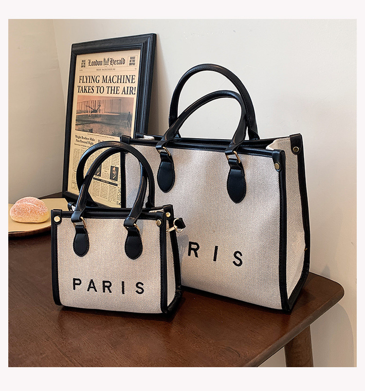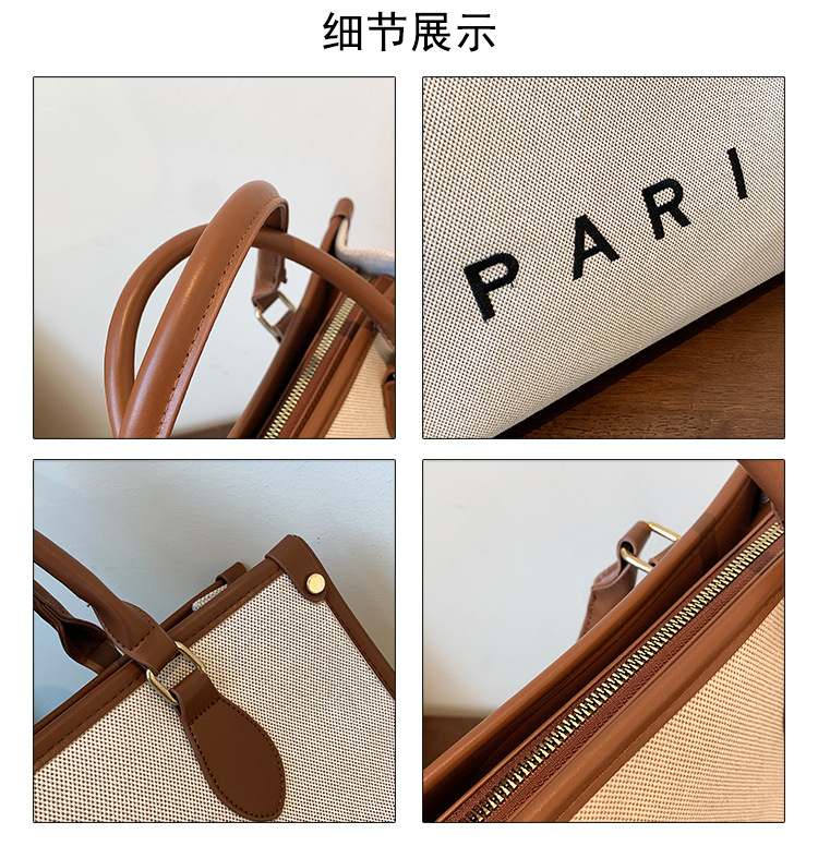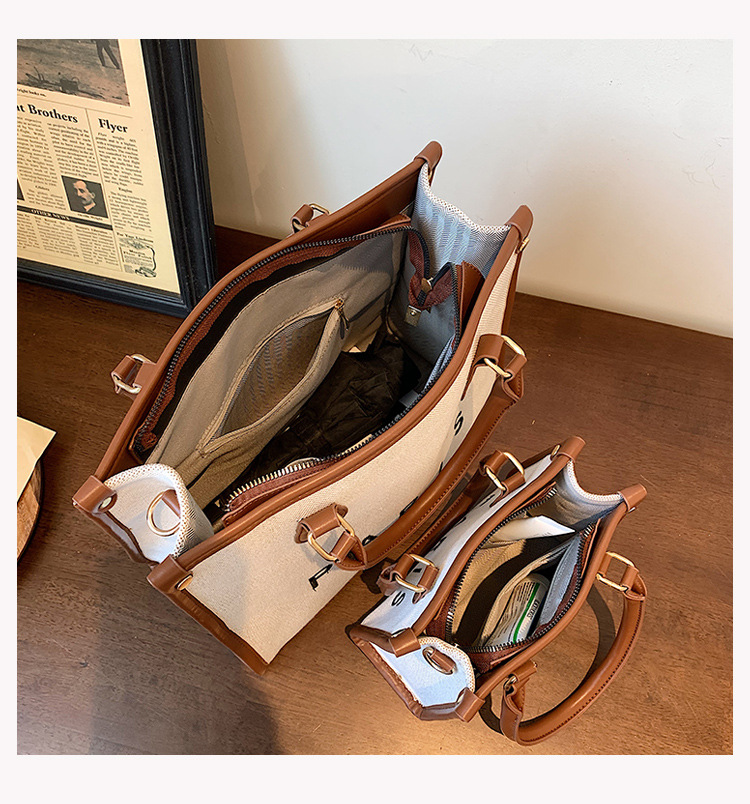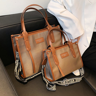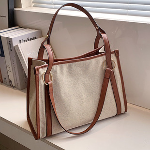 复古高级感手提大容量包女2024新款潮时尚帆布撞色通勤单肩托特包