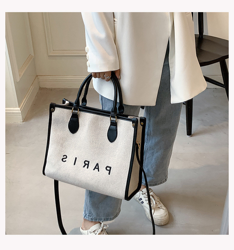 帆布包包批发大容量撞色单肩包2022跨境新款手提包潮流时尚托特包