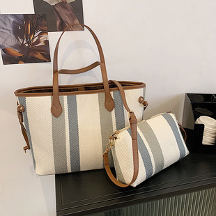 跨境托特包包女2022新款潮外贸手提包帆布条纹单肩斜挎包一件代发