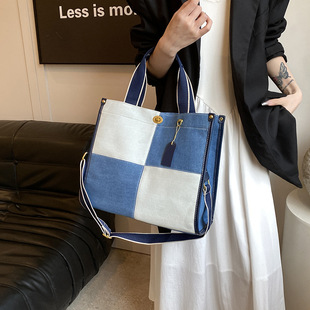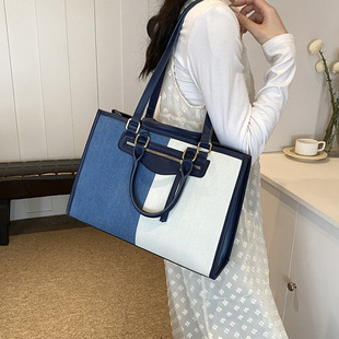大容量牛仔布包包女2024新款潮撞色拼接手提托特包通勤单肩斜挎包