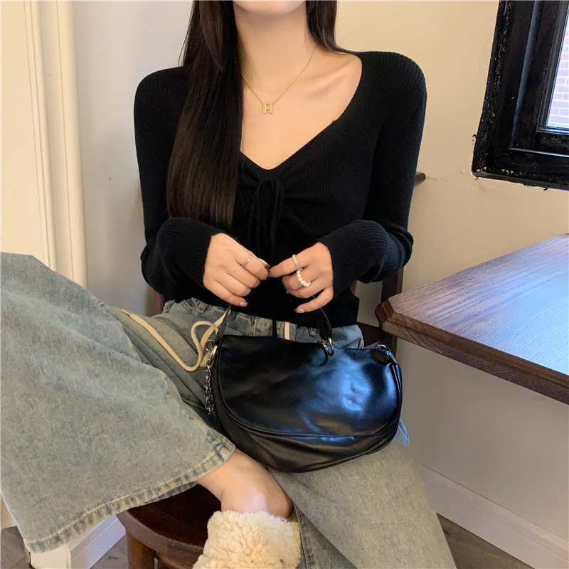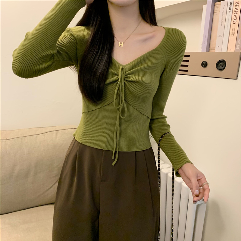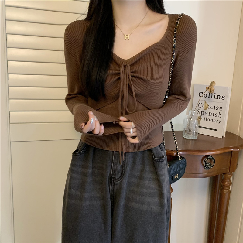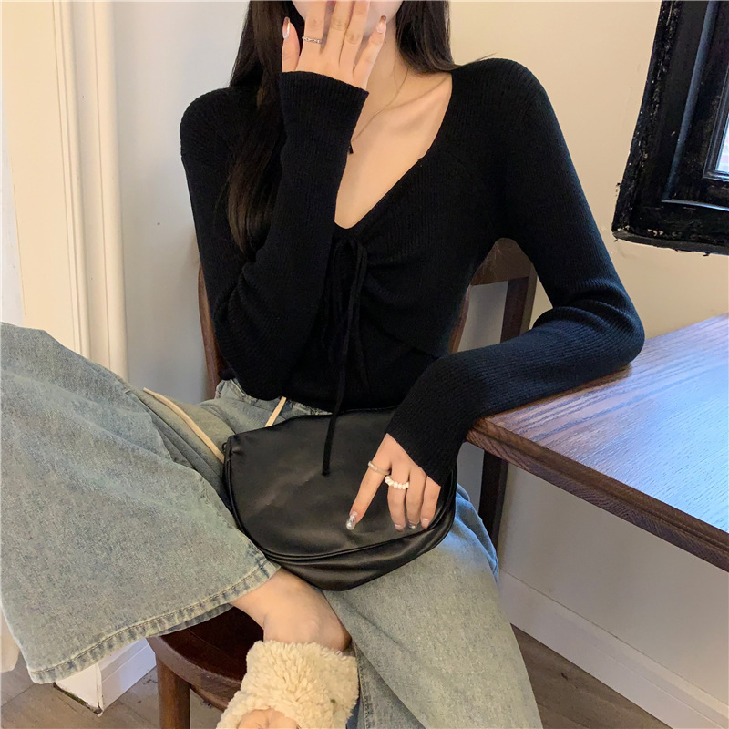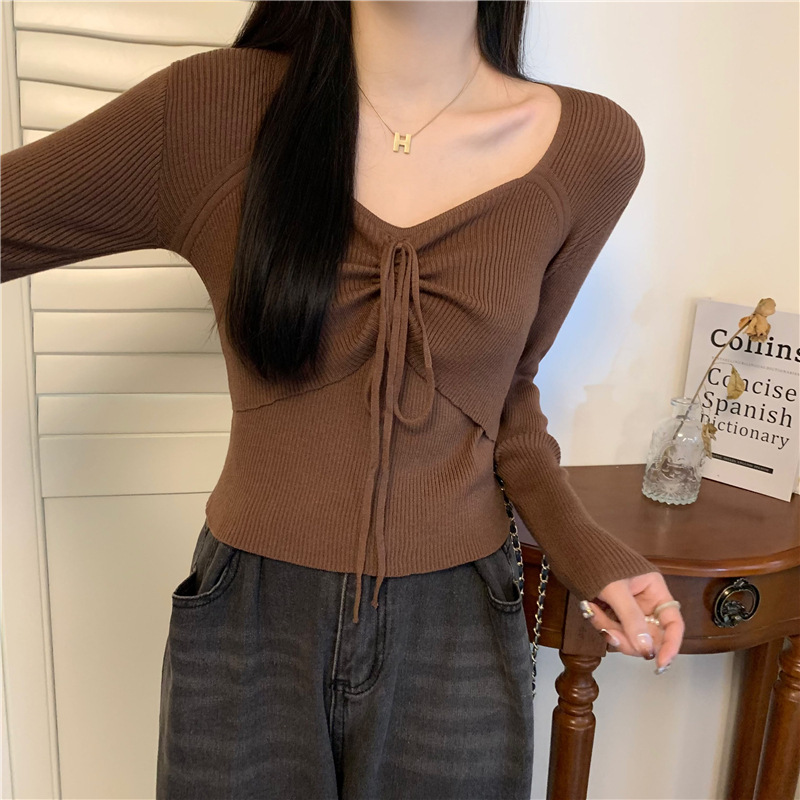 2025 봄과 가을 한국 스타일 기질 가짜 투피스 드로우 레이스 업 긴팔 니트 베이스 셔츠 내부 티셔츠 여성용 탑