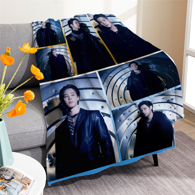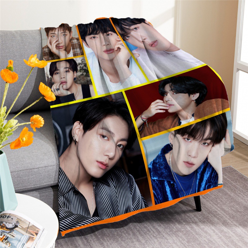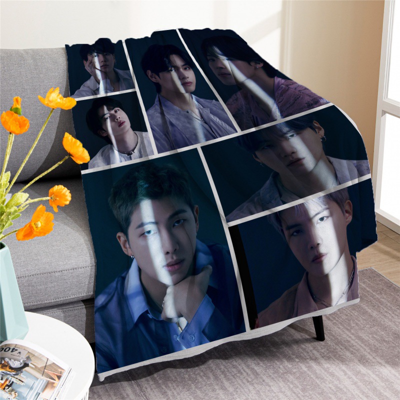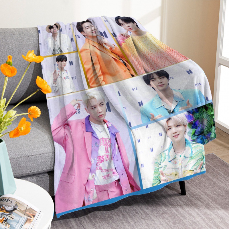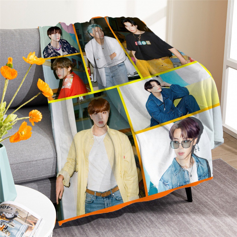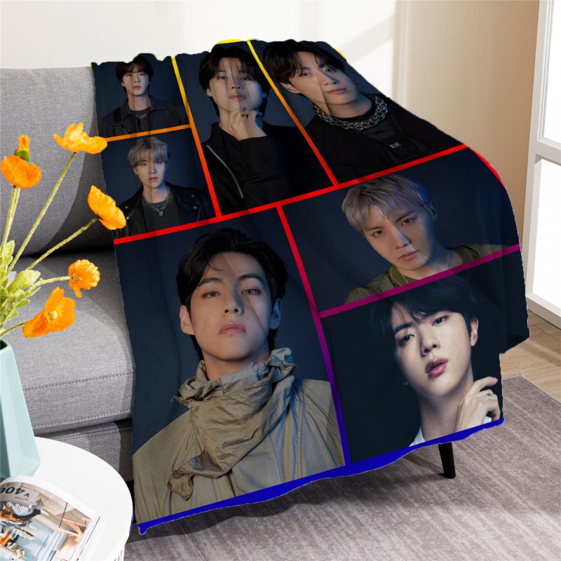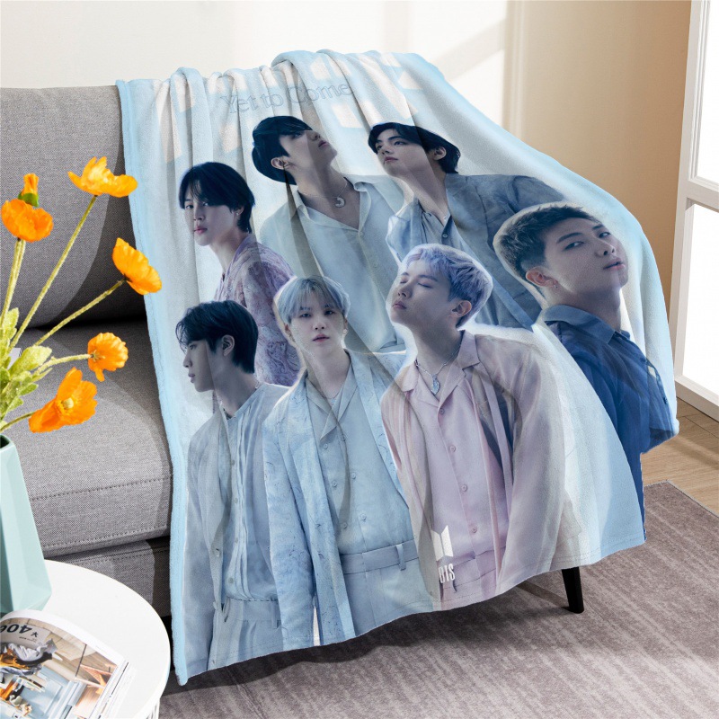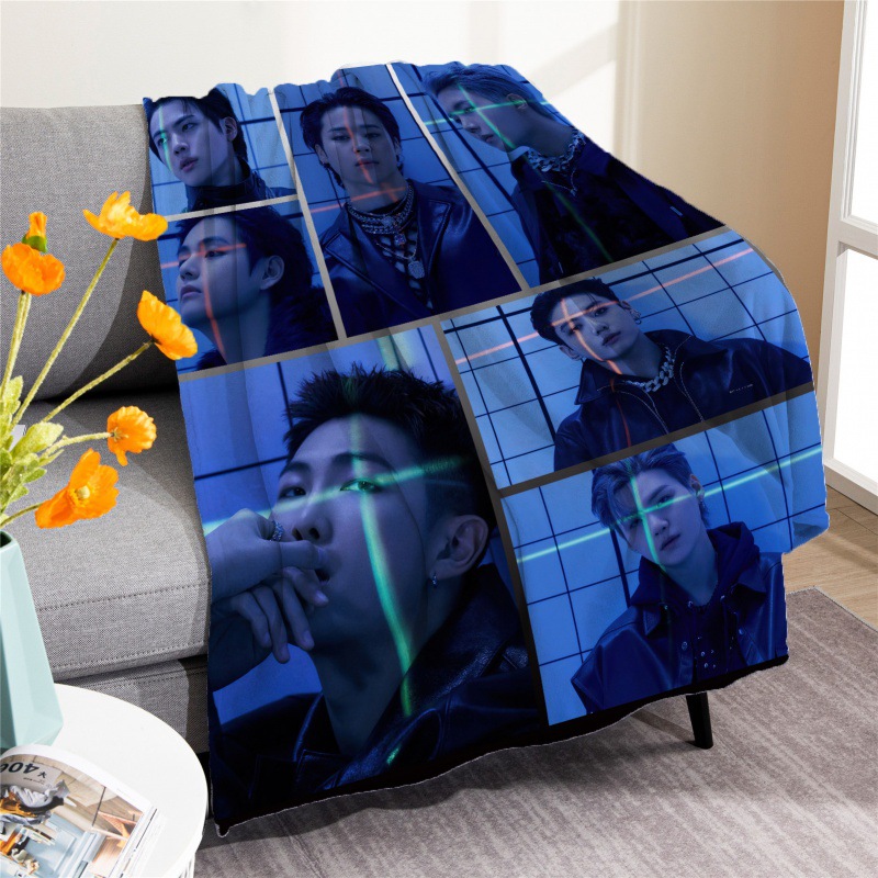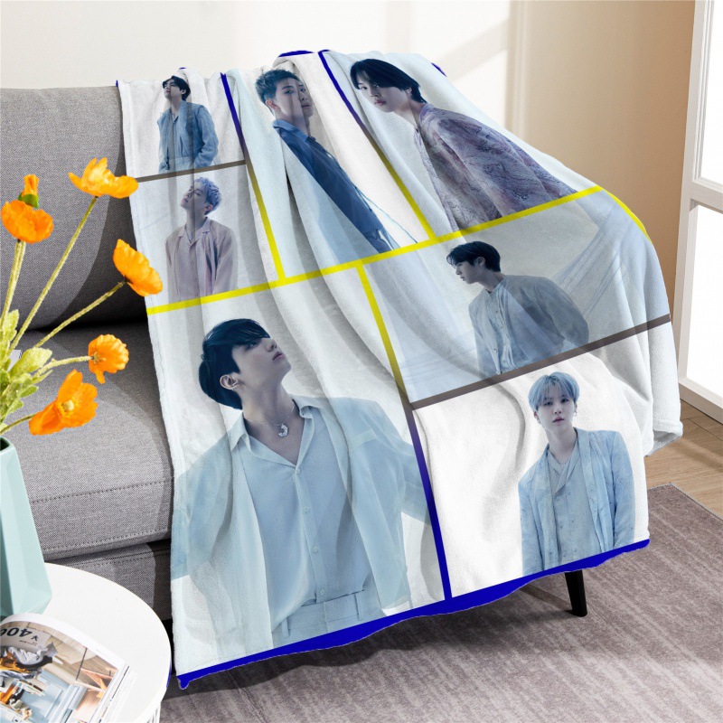 BTS 남성 그룹 인쇄 플란넬 담요 소파 담요 에어컨 담요 사무실 낮잠 담요 주변 국경 별스토어 가기