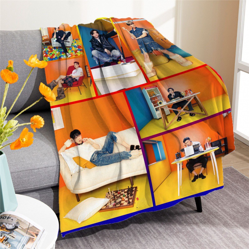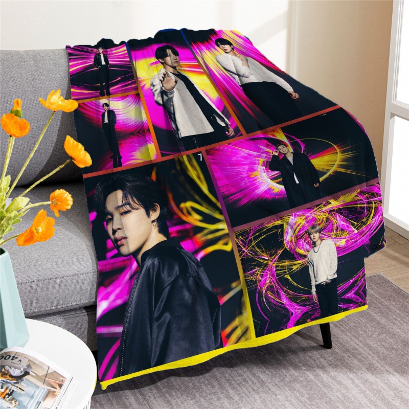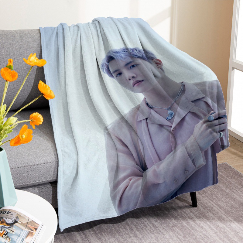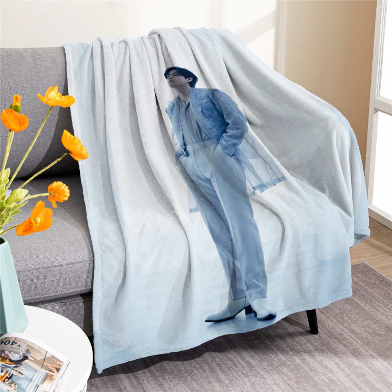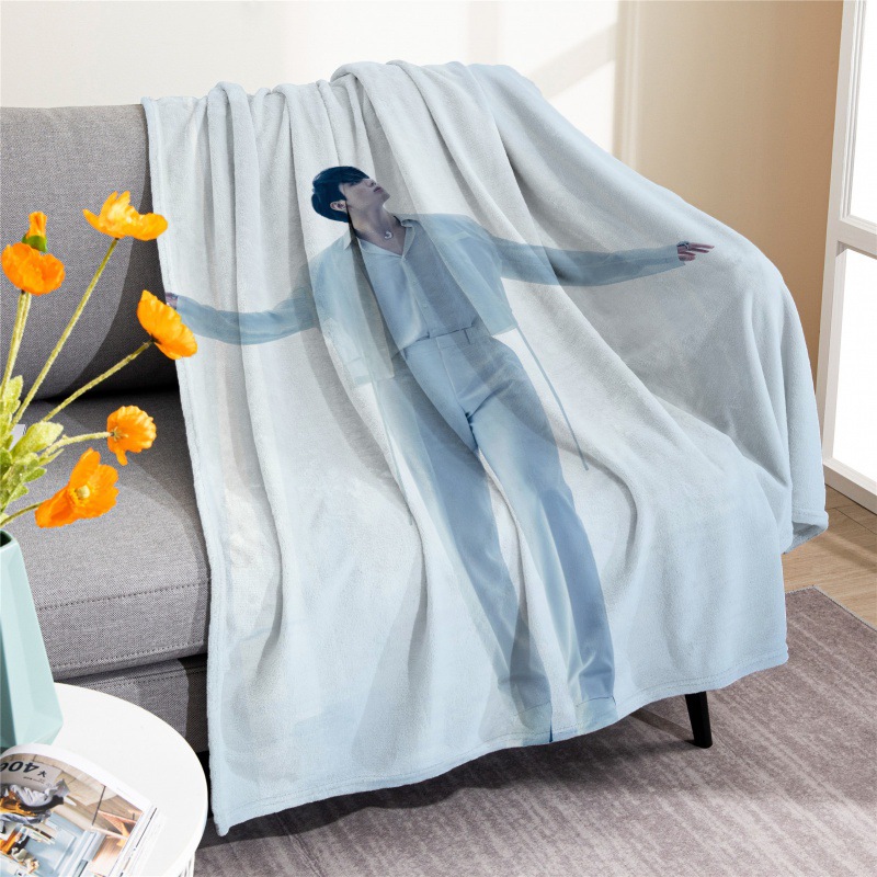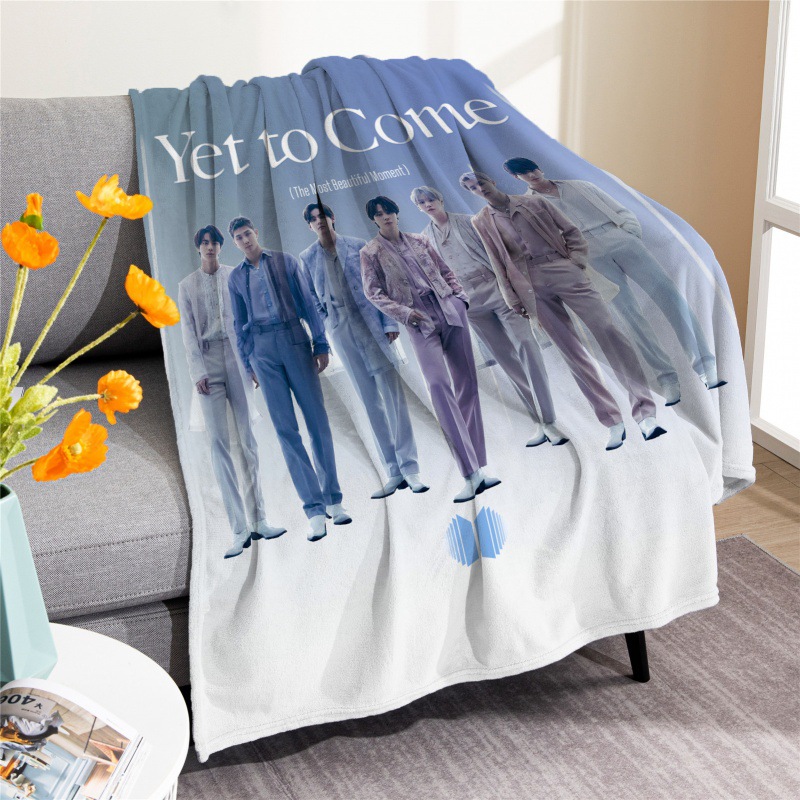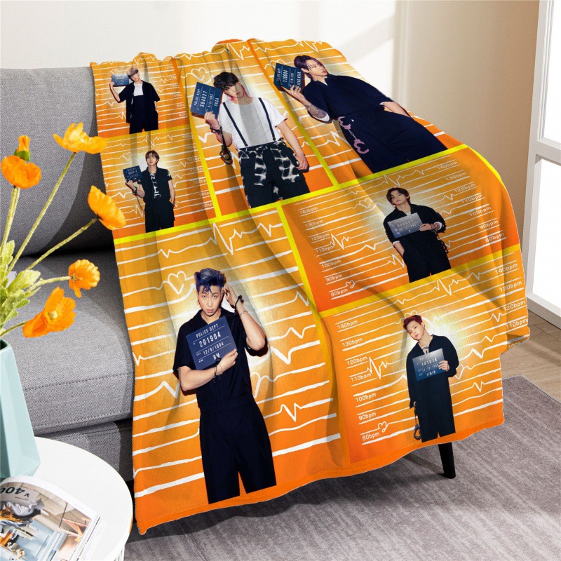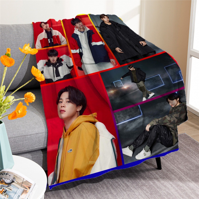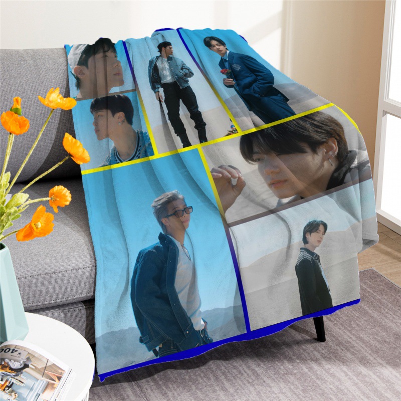 BTS 남성 그룹 인쇄 플란넬 담요 소파 담요 에어컨 담요 사무실 낮잠 담요 주변 국경 별스토어 가기