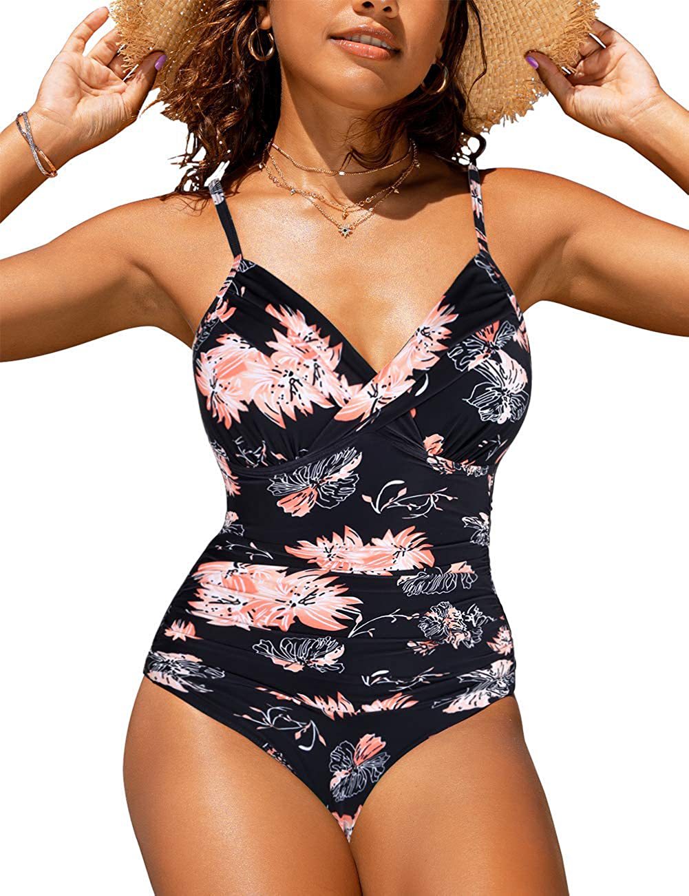 2026 아마존 인기 수영복 섹시한 단색 크로스 플리츠 타이트 원피스 비키니 유럽 및 미국 수출용 수영복스토어 가기