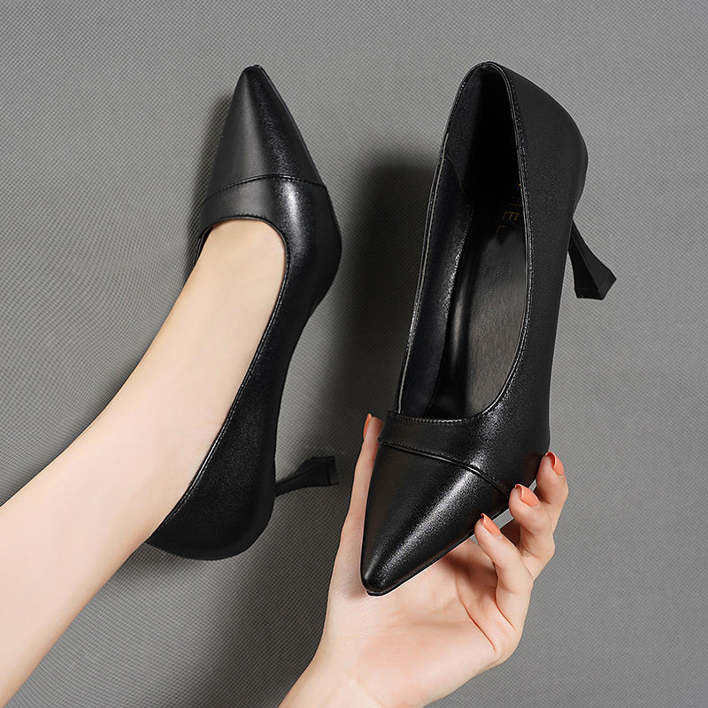 스틸레토 힐 2023 신형 통근 전 경기 작업화 블랙 기질 부드러운 가죽 전문 신발 여성용 뾰족한 발가락스토어 가기