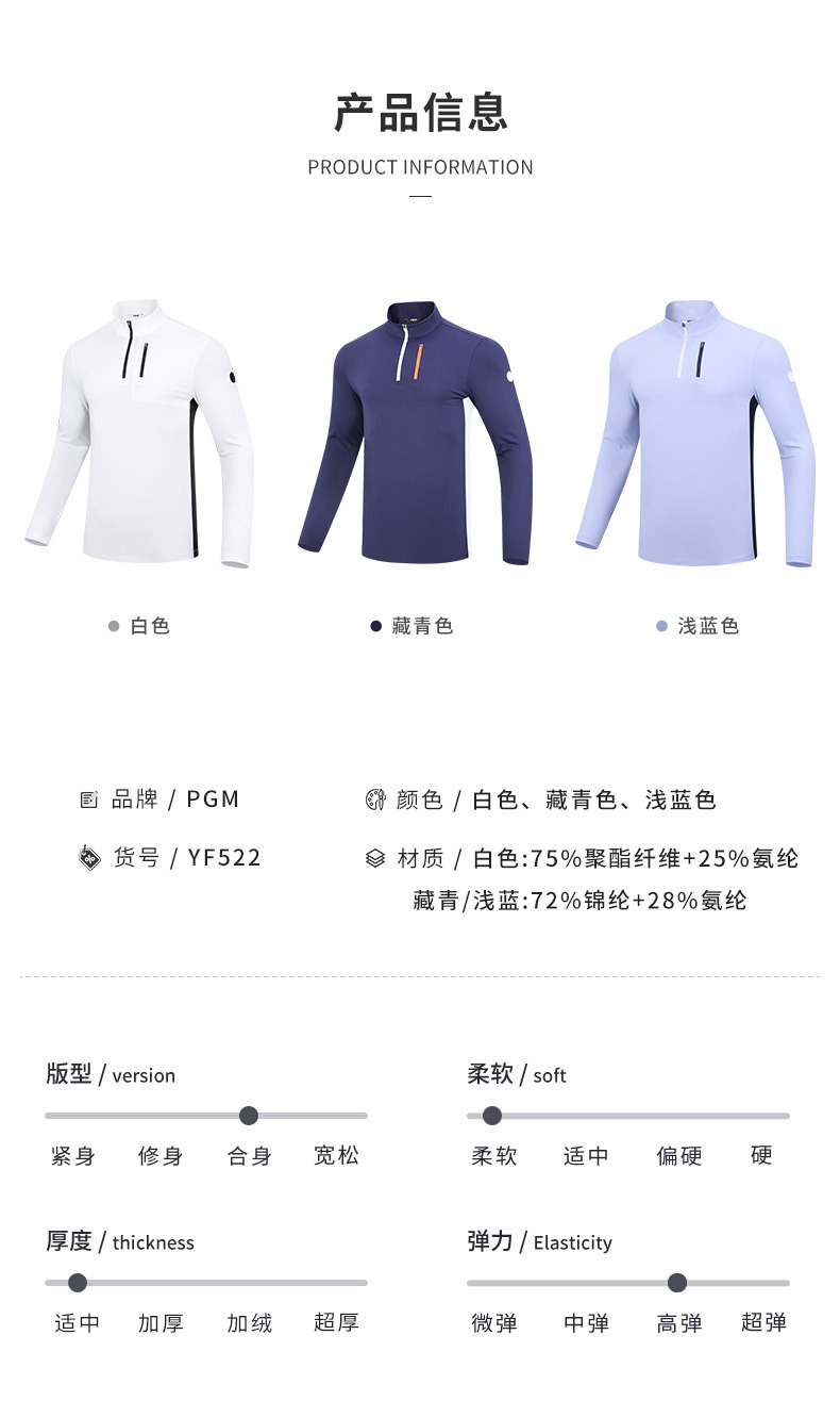 PGM 골프 의류 남성용 긴 소매 티셔츠 부드러운 피부 친화적 스탠드 칼라 패션 디자인 스포츠 톱 공장 도매스토어 가기