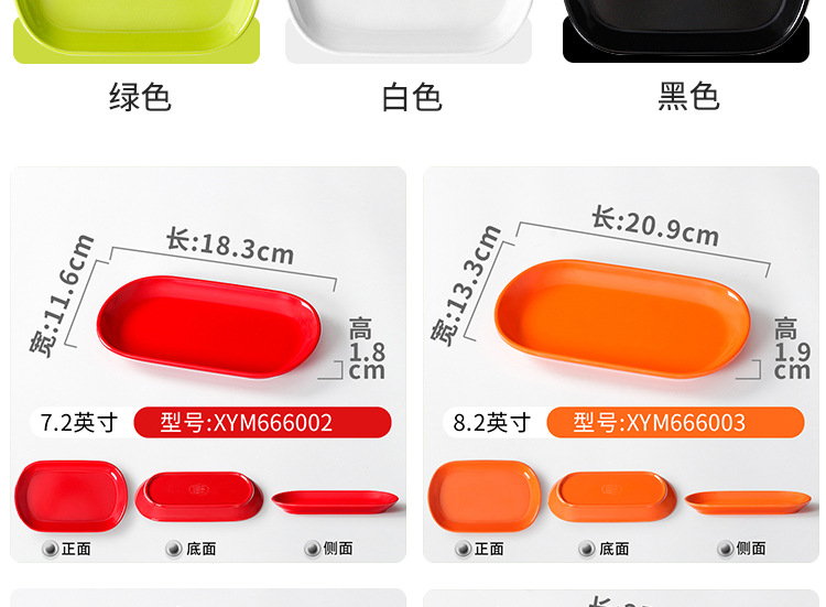 멜라민 모조 도자기 식기 레스토랑 커버 밥 접시 패스트 푸드 접시 냄비 식당 요리 바베큐 긴 접시 스낵 플레이트 상업