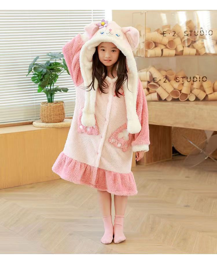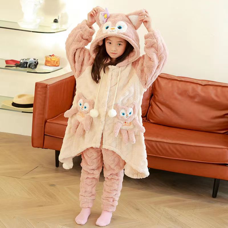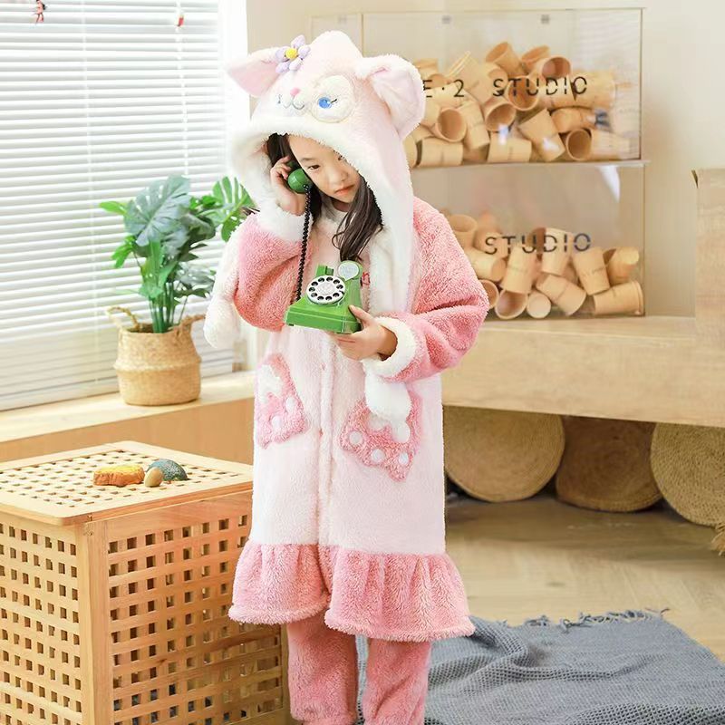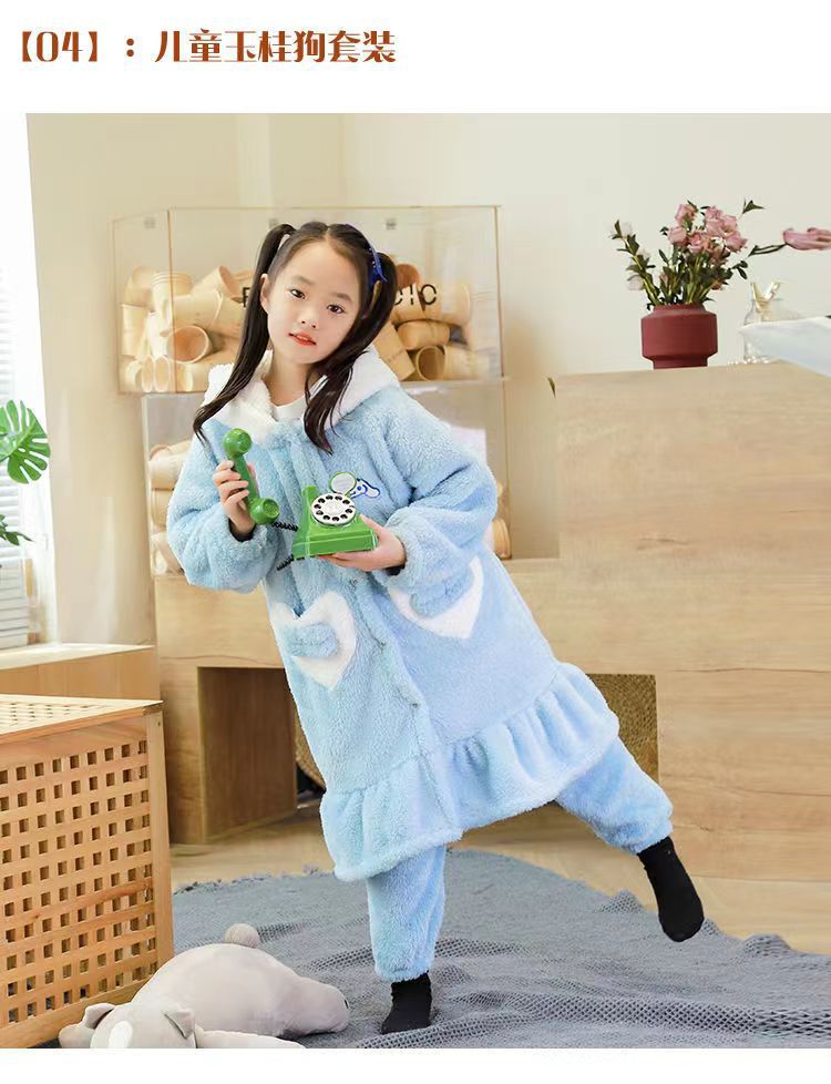 리나 벨 북극 벨벳 어린이 잠옷 여아 겨울 두꺼운 플란넬 잠옷 여아 가정복 세트