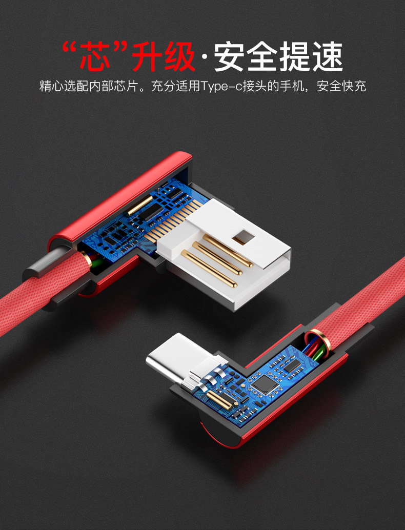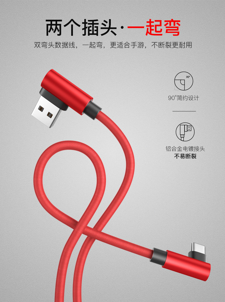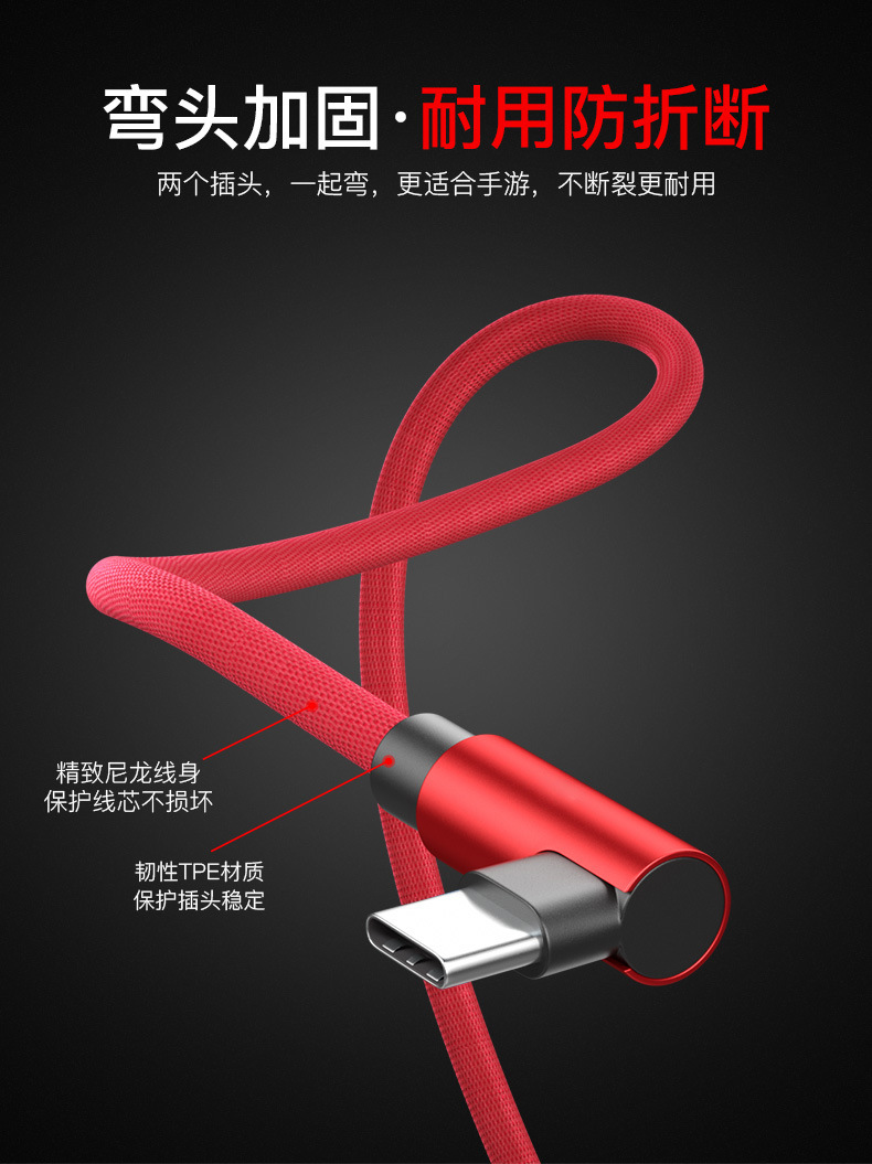 더블 팔꿈치 Type-c 데이터 케이블 천 짠 USB 안드로이드 휴대 전화 범용 충전 라인 게임은 손을 막지 않습니다