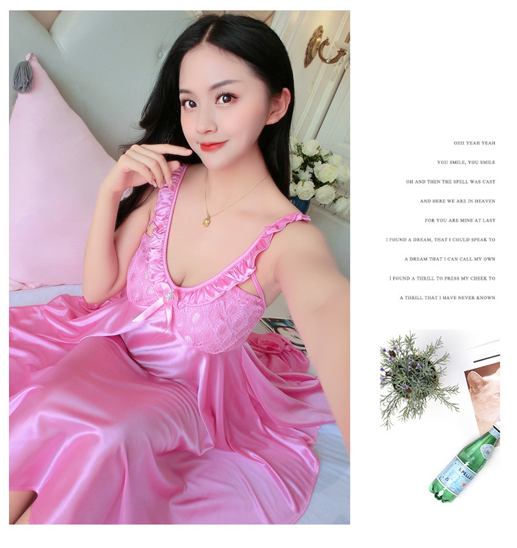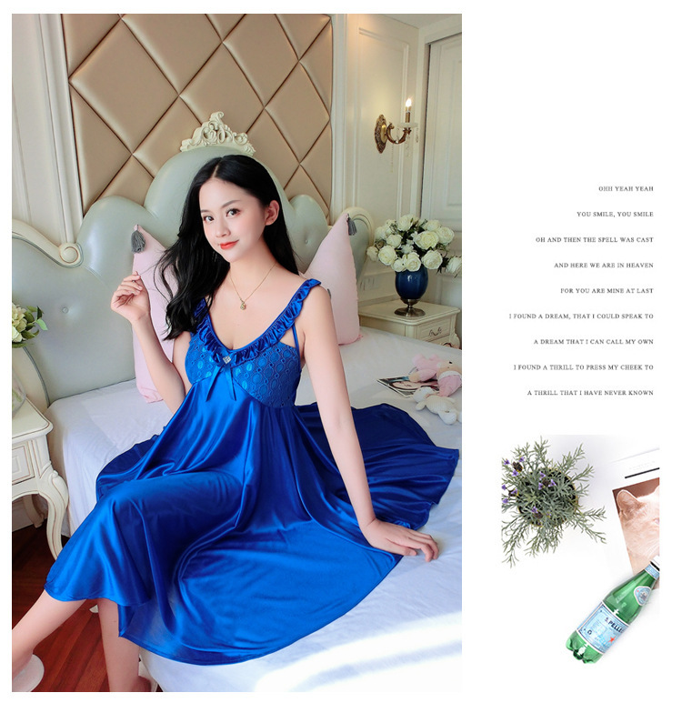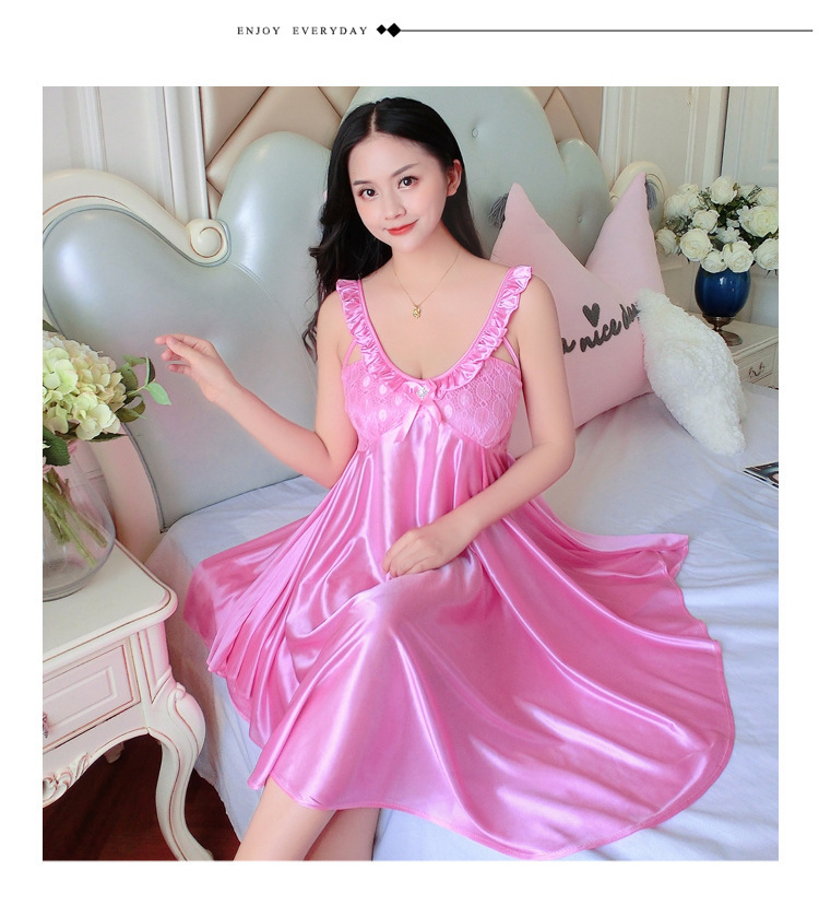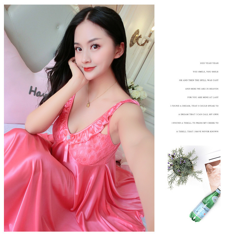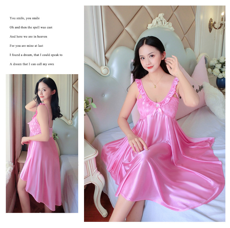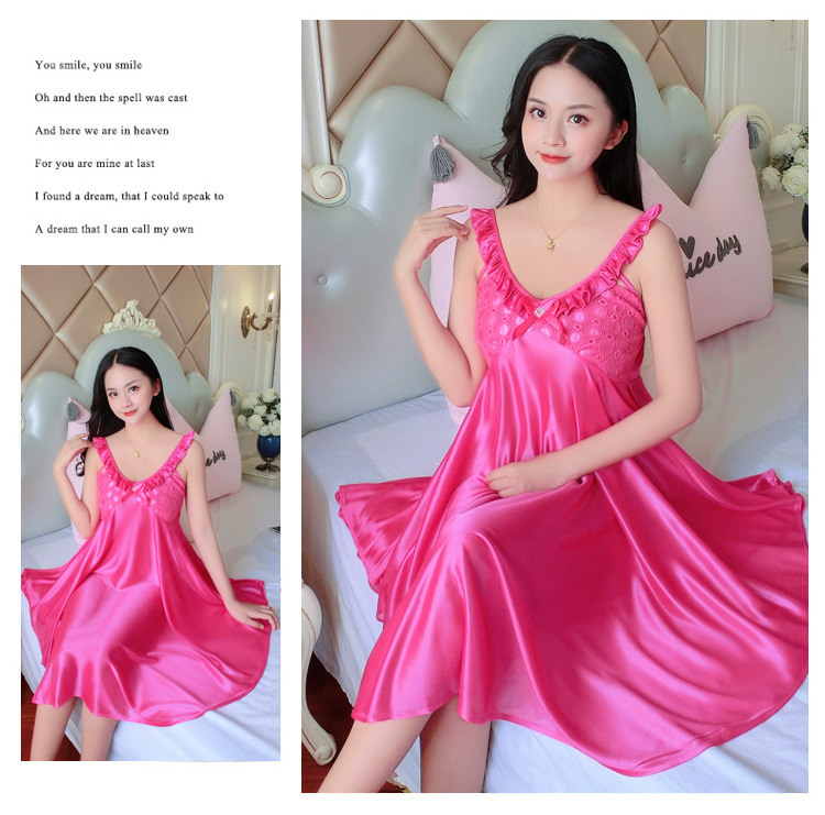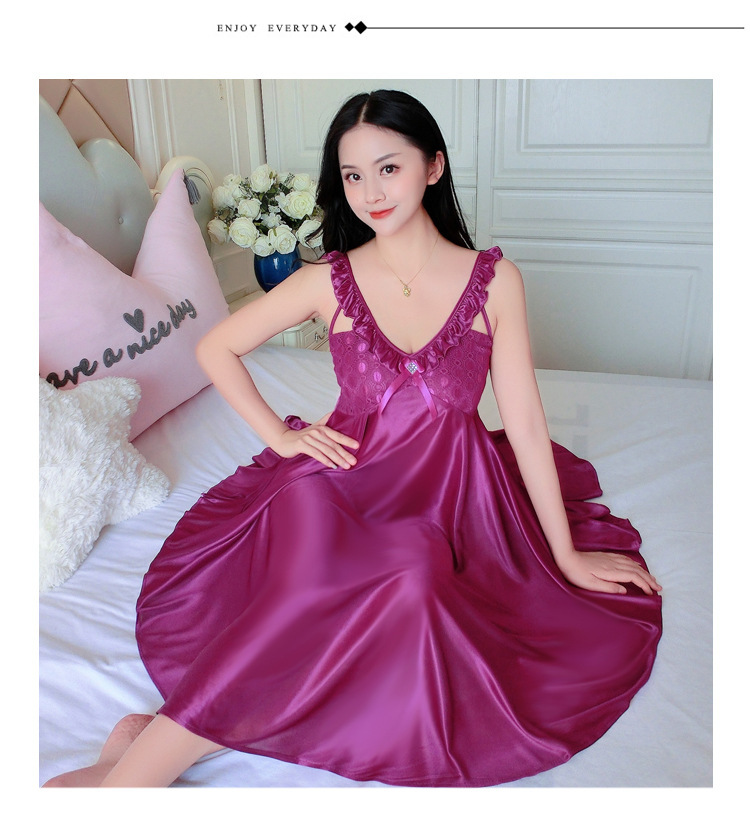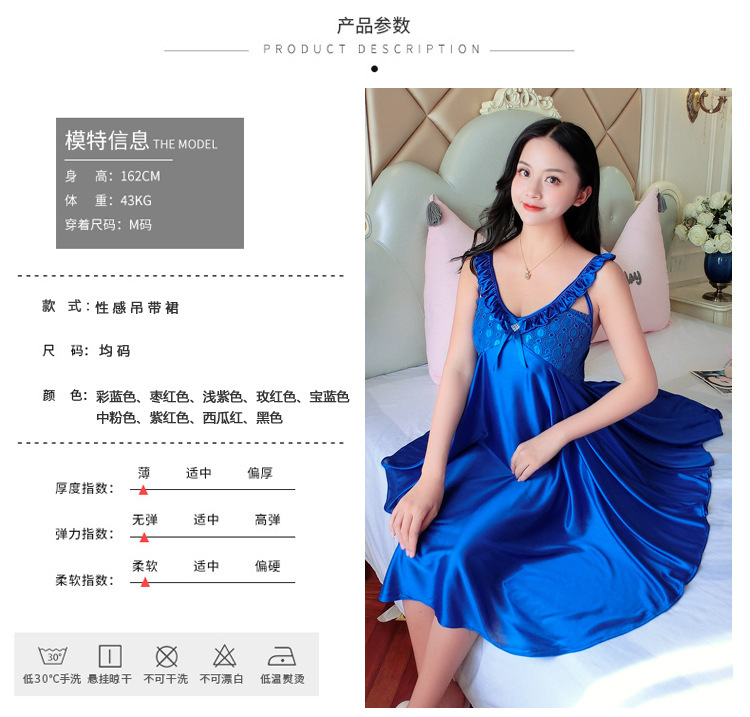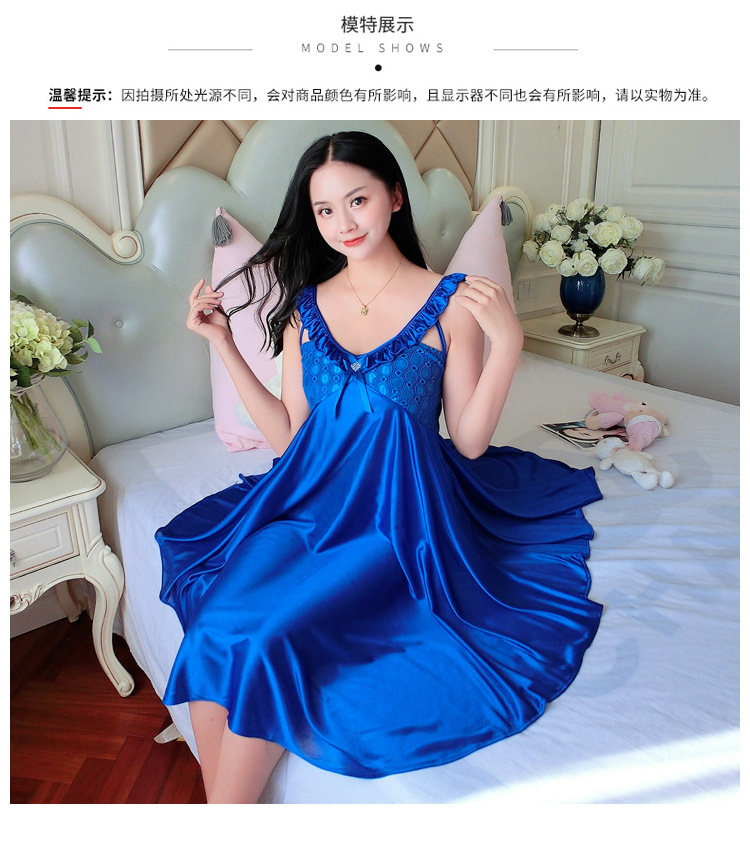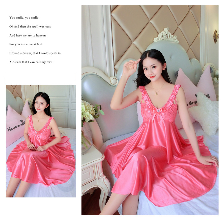 여름 여자의 잠옷 섹시한 V-넥 아이스 실크 슬링 잠옷 여자의 모조 실크 가정 옷 도매스토어 가기